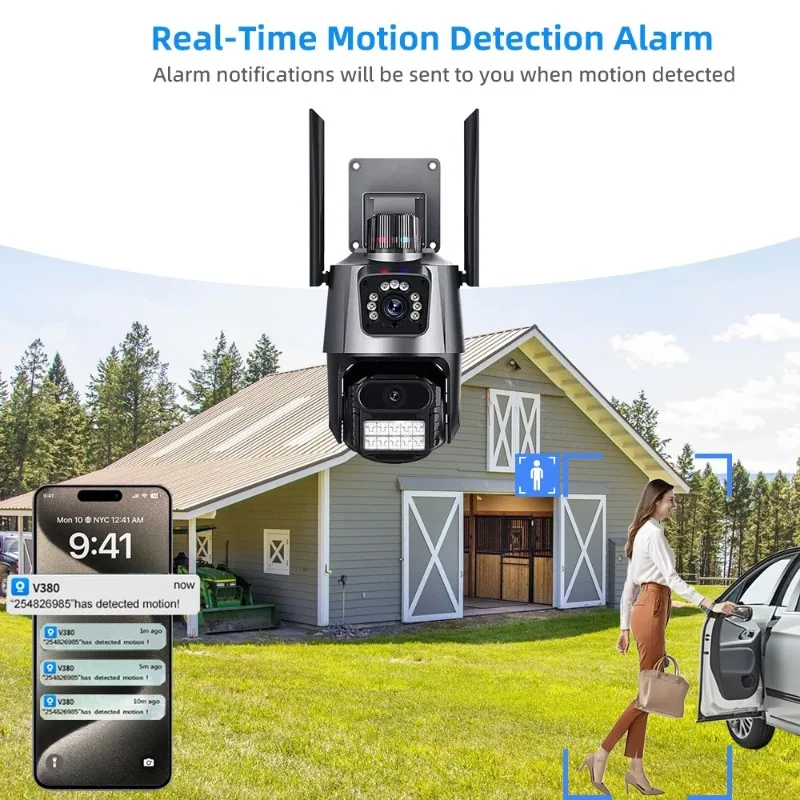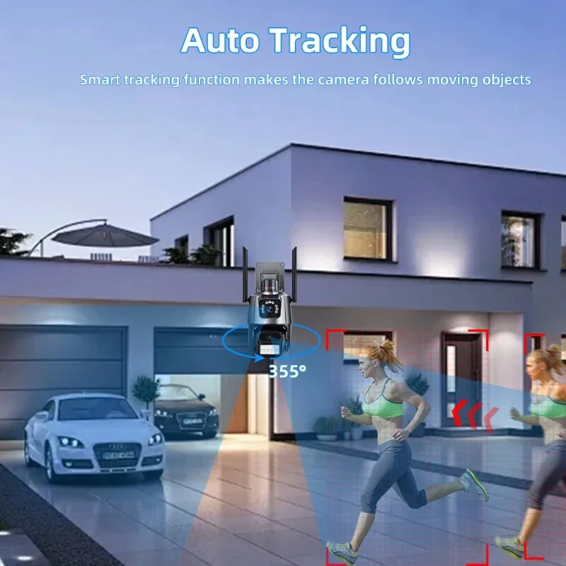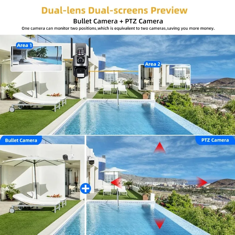 4K 8MP Dual Lens PTZ WiFi Wireless IP Camera Outdoor Waterproof CCTV Security Surveillance with Auto Tracking