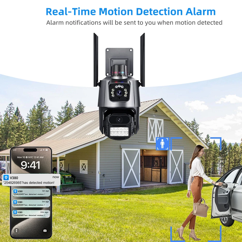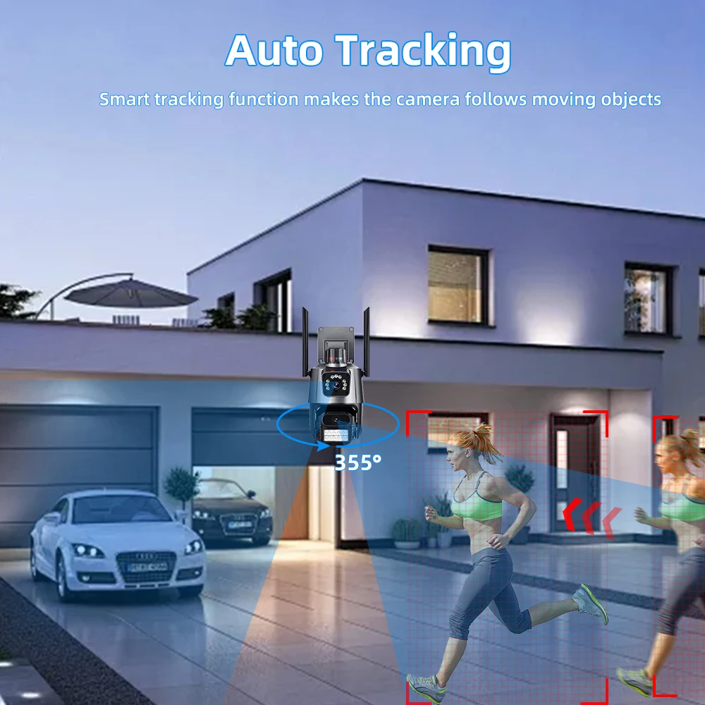 4K HD 8MP Outdoor Security Camera Dual Lens PTZ Auto Tracking WIFI Wireless IP Cam Human Detection Night Vision Waterproof CCTV