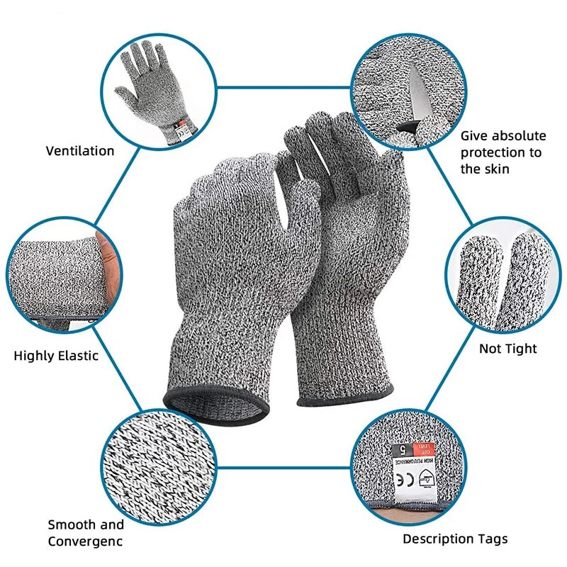 Cut Resistant Gloves HPPE Level 5 Abrasion Resistant Carpentry Kitchen Knife Fish Grabbing Slip Resistant Hand Protection