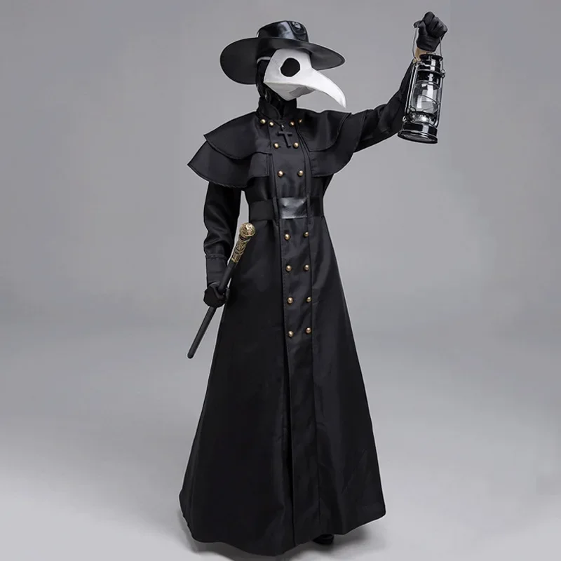 Halloween Medieval Hooded Robe Plague Doctor Costume Mask Hat for Men Monk Cosplay Steampunk Priest Horror Wizard Cloak Cape 5XL