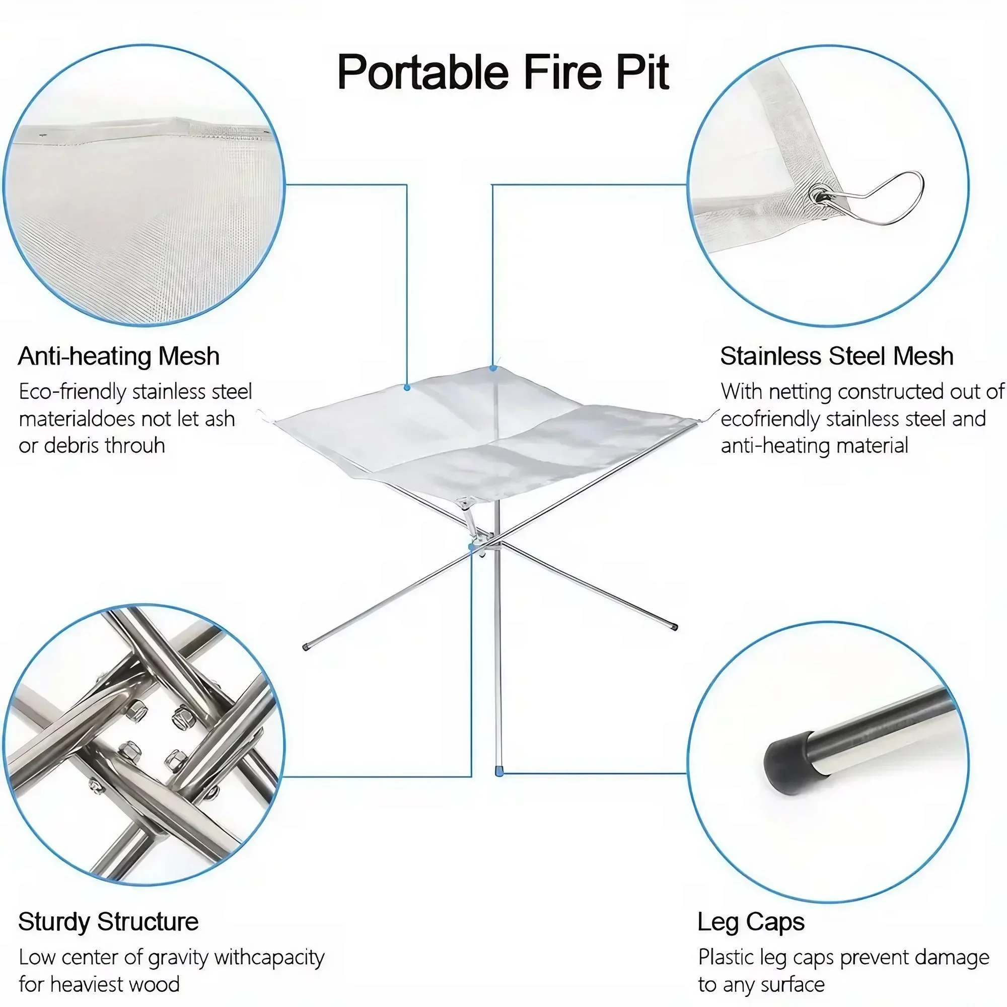 ALI shop - rezultati pretrage ... ... Folding Portable Steel Mesh Camping Fire Pit, Outdoor Wood Burning Bonfires Rack, Stainless Steel Fire Pit, with Carrying Bag ::: 2021 ::: :::