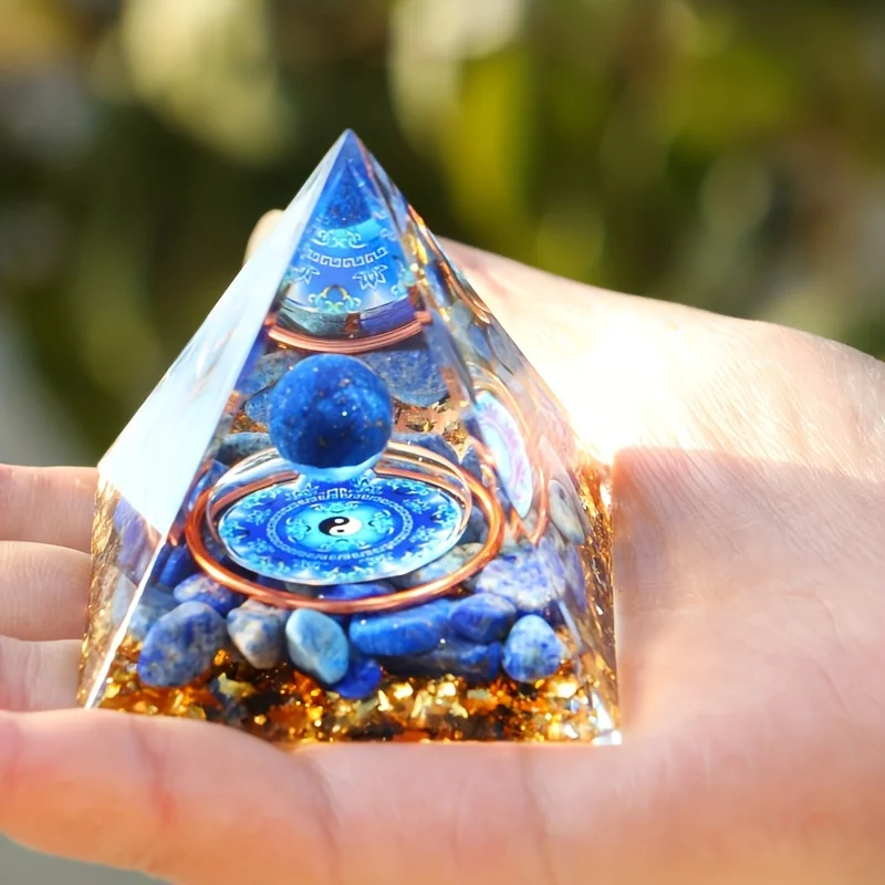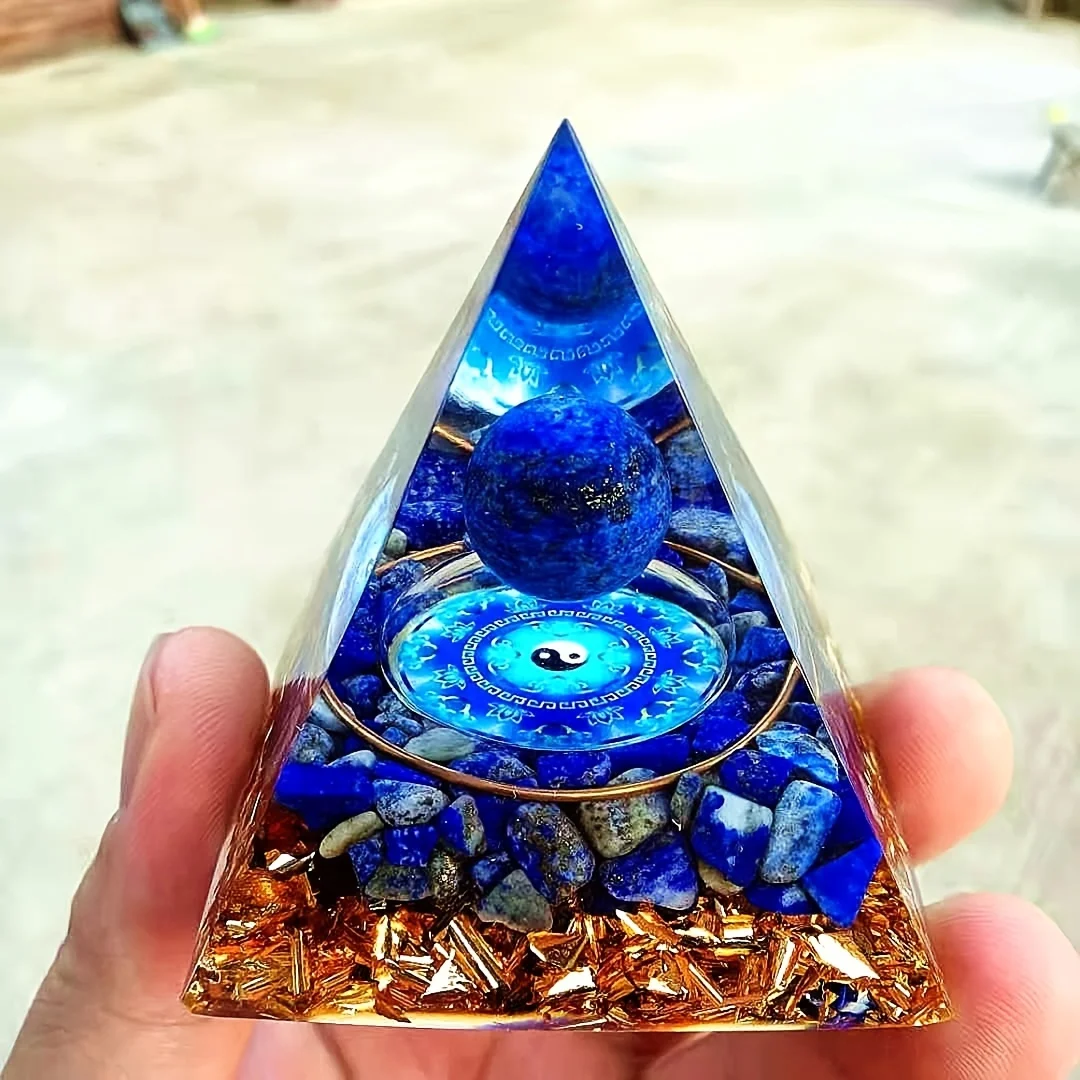 1Pc Orgone Pyramid, Natural lapis lazuli Sphere, Energy Orgone Pyramid Stone Decoration, Tai Chi Diagram, Bedside Decoration