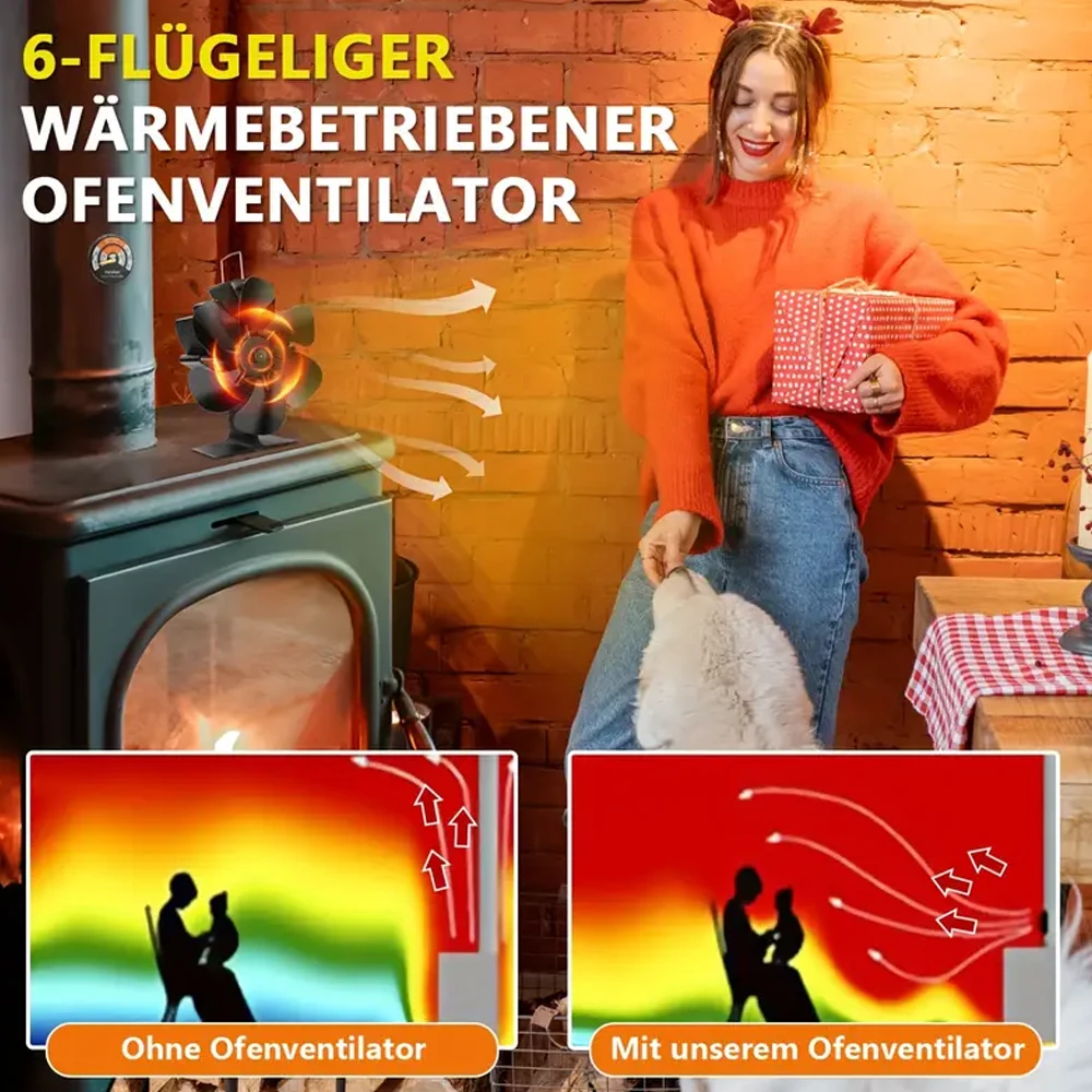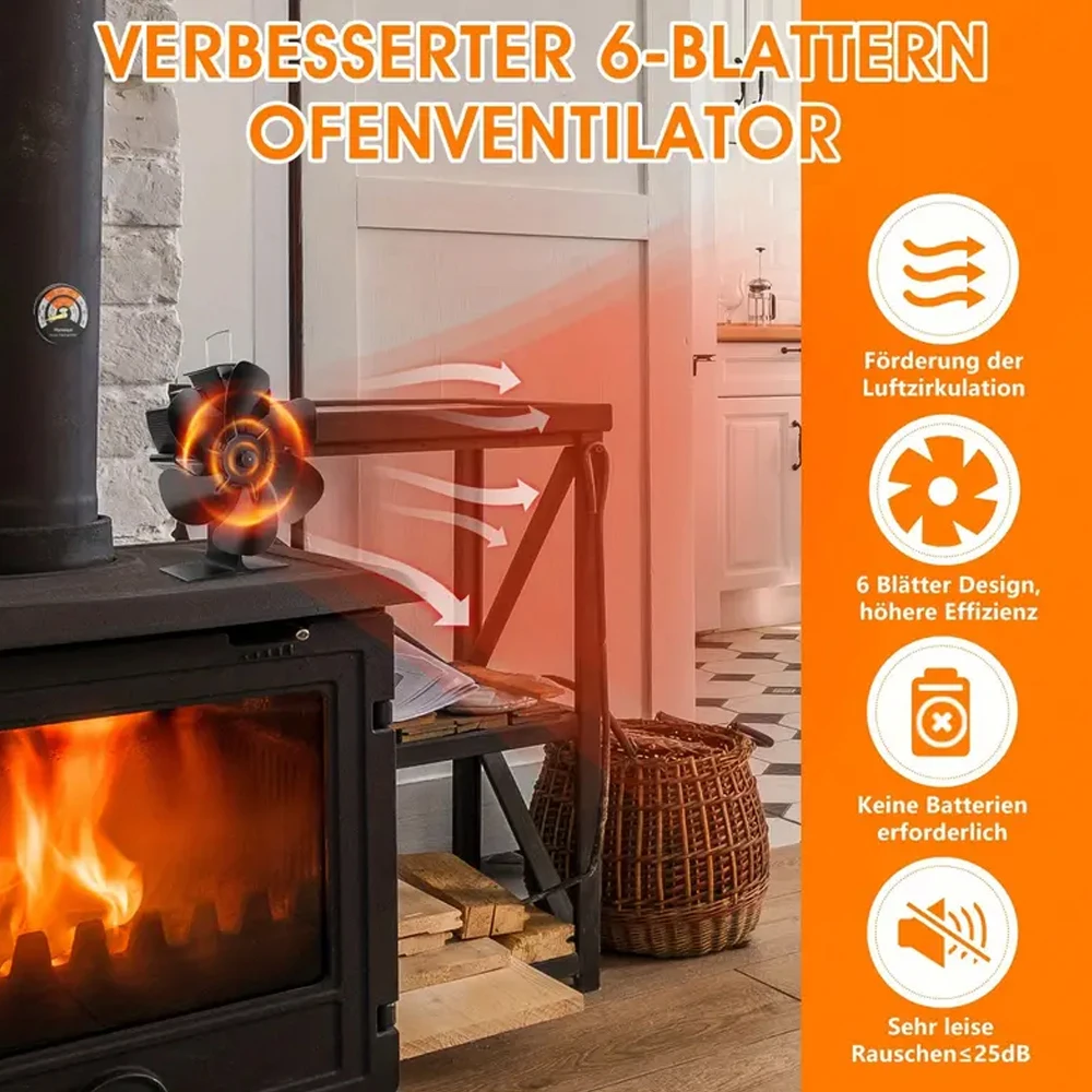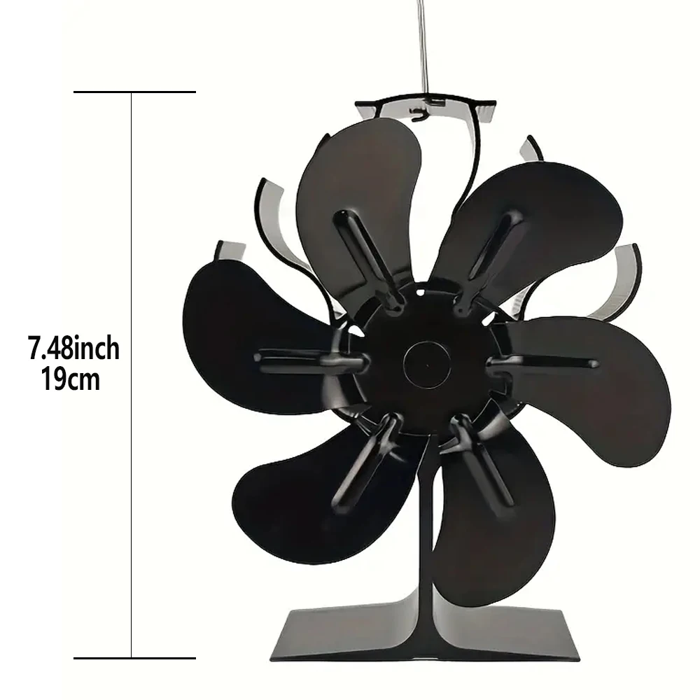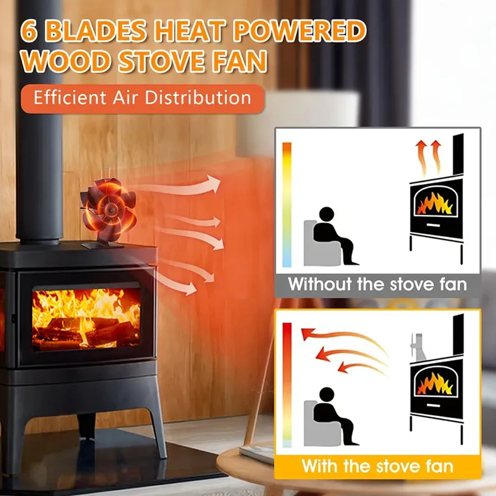 Heat Powered Stove Fan Eco Quiet Black 6 Blades Log Wood Burner Fireplace Fan Efficient Heat Distribution Winter Warmer Home