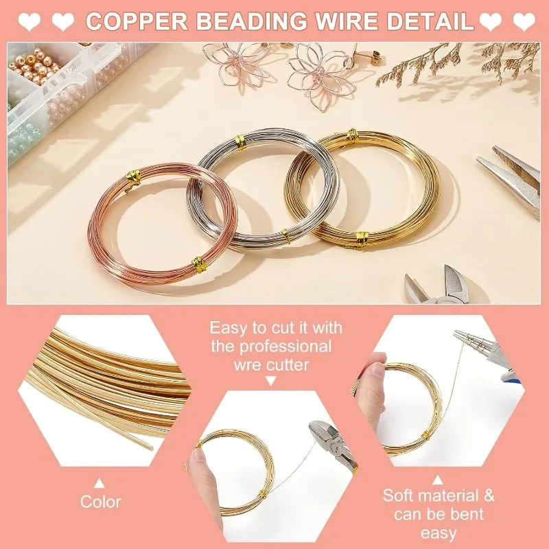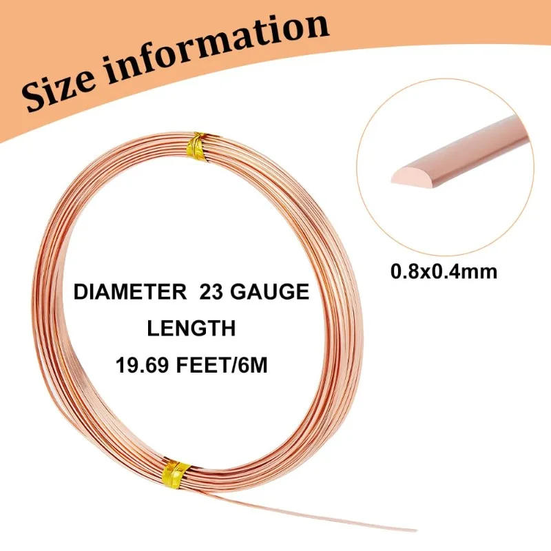 1Bundle 23 Gauge 20 Feet Half Round Copper Wire 0.6mm Wide Bare Copper Beading Wire for Crafts Making Supplies