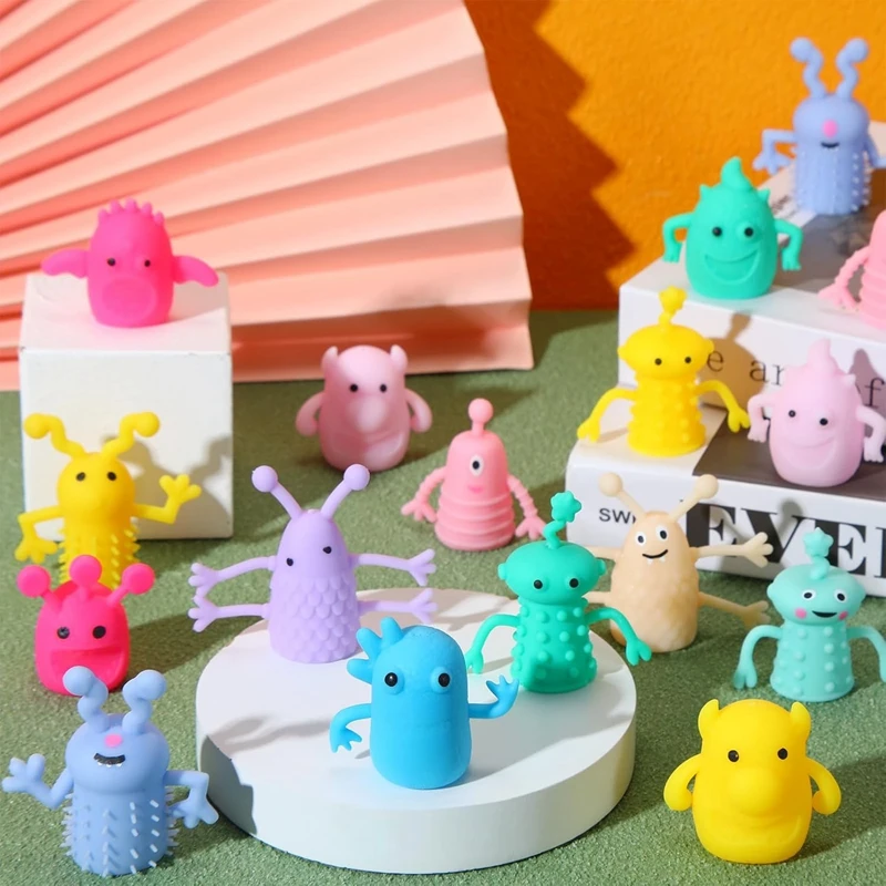 10-30Pcs Cute Monster Puppets Finger Toy Soft Rubber Stretchy Fidget Toy Kids Birthday Party Favors Pinata Filler Christmas Gift