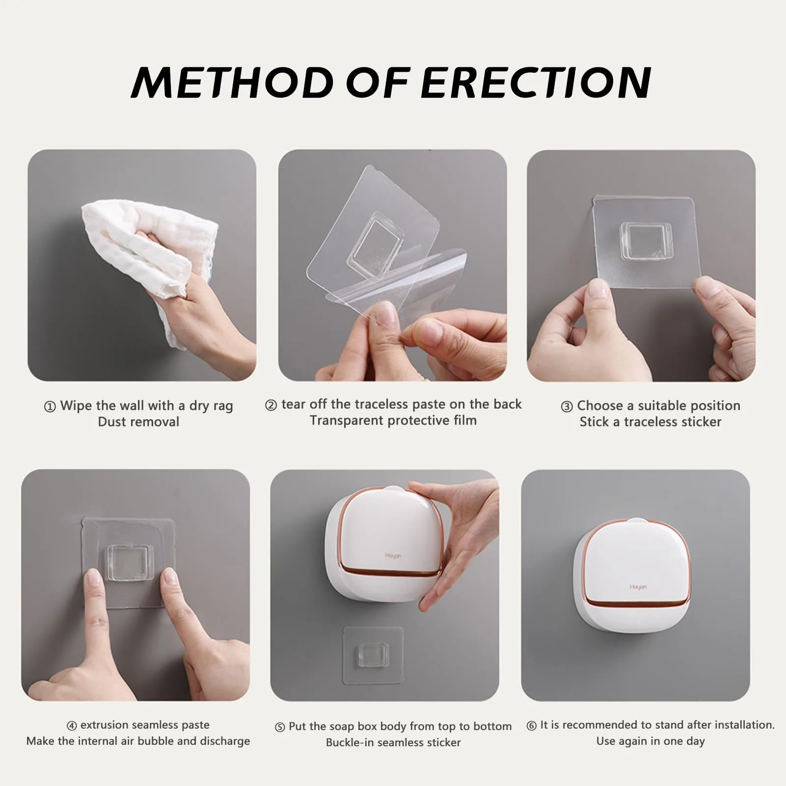 Wall-Mounted Soap Box with Lid Light Luxury Soap Holder Punch-Free Soap Box Drain Laundry Soap Box For Bathroom Kitchen