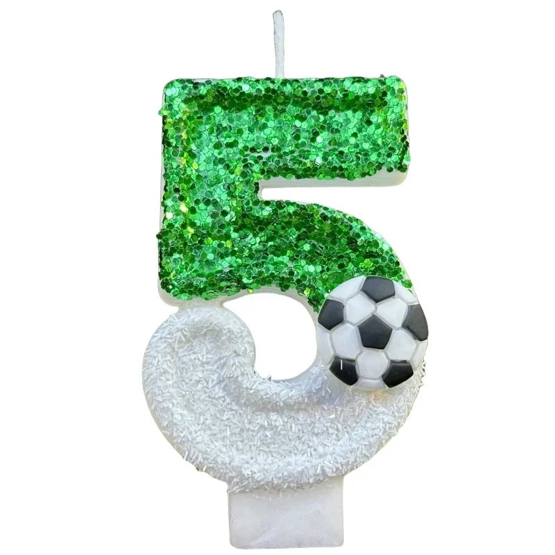 Football Children's Birthday Candles Number 0-9 Green Sparkles Birthday Creative Soccer Candle for Boy Party Cake Top Decoration