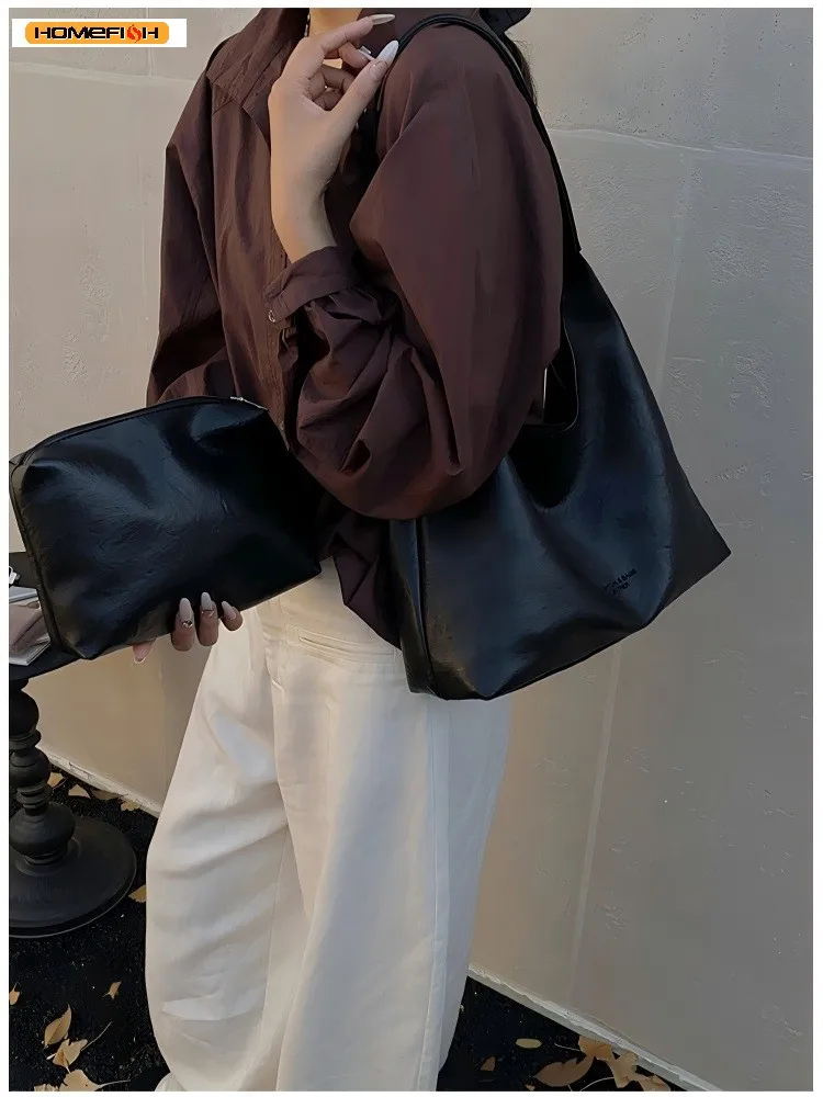 Homefish New Tote bag 100 hand bill of lading shoulder women's bag retro simple large bag Tote bag