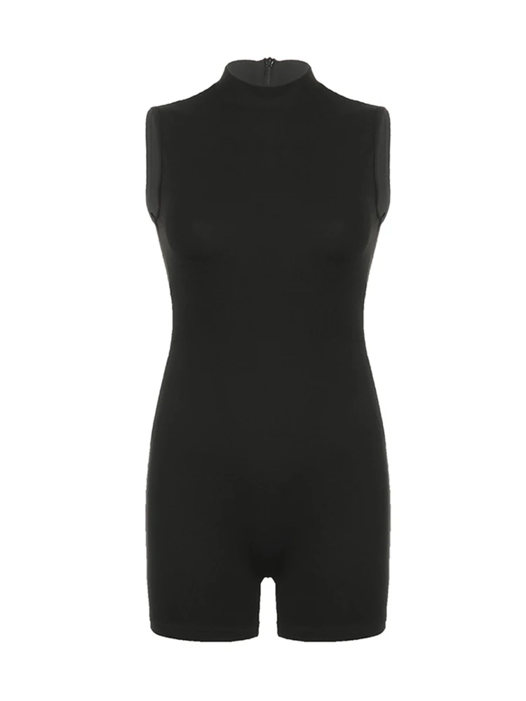 Women's Sports Jumpsuit Invisible Zipper Sleeveless High Street Rompers Basic All-match Female Summer Playsuit 2023