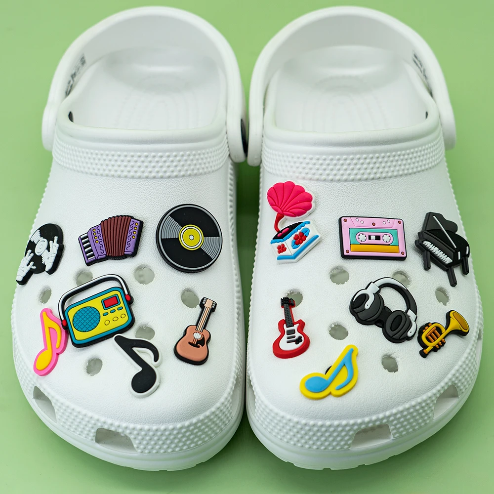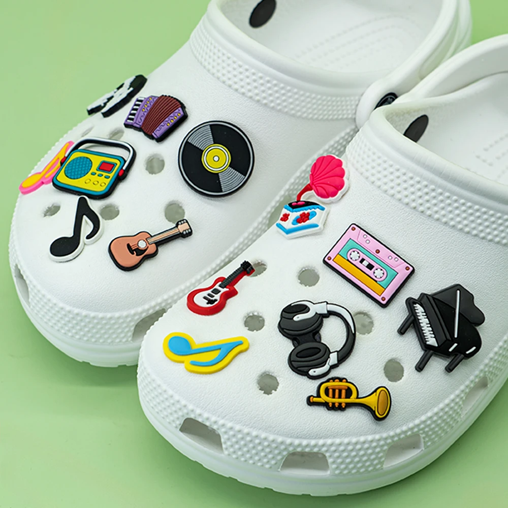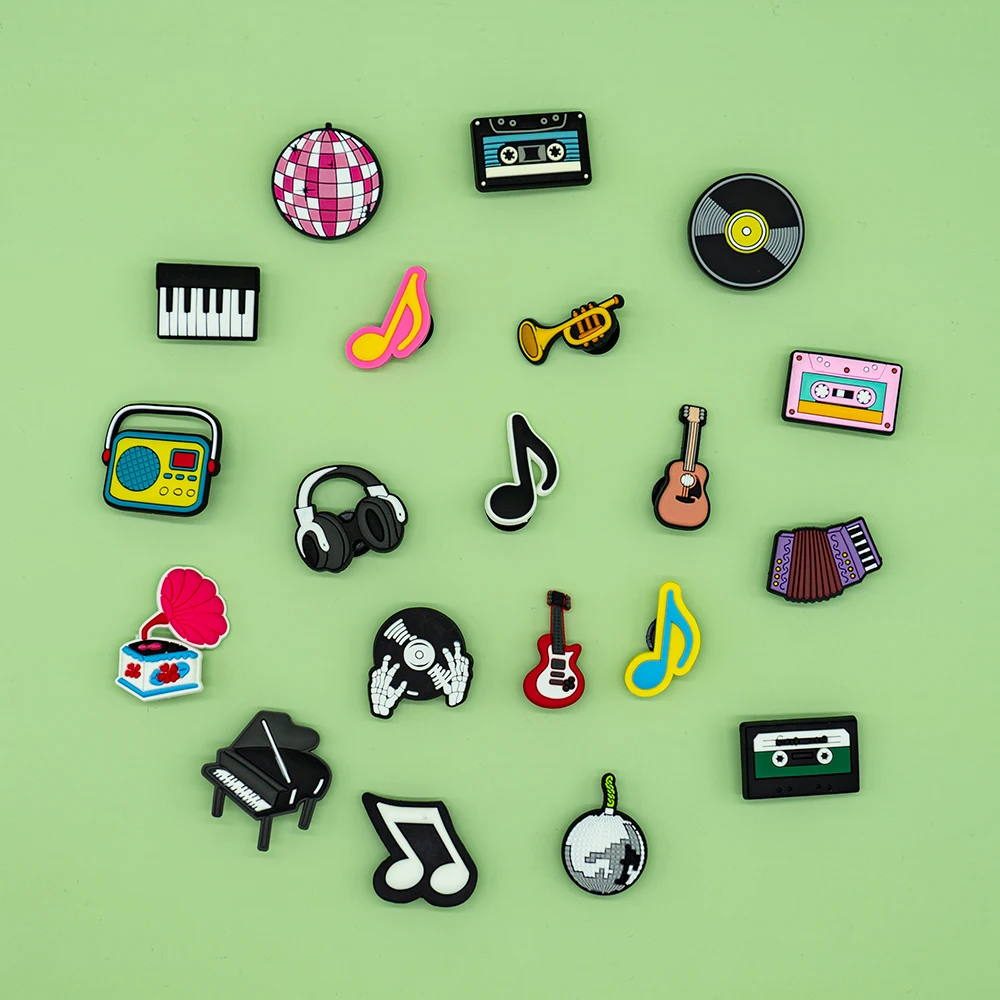 1/20pcs Musical Instruments Pins for Men Women Kids Piano Guitar CD Shoe Charms Shoe Accessories Decorations Buckles Ornament