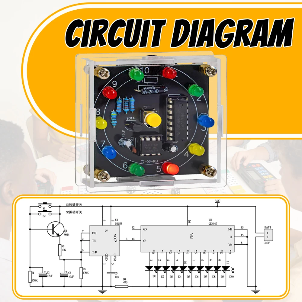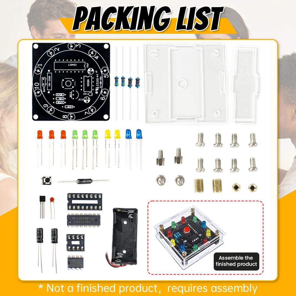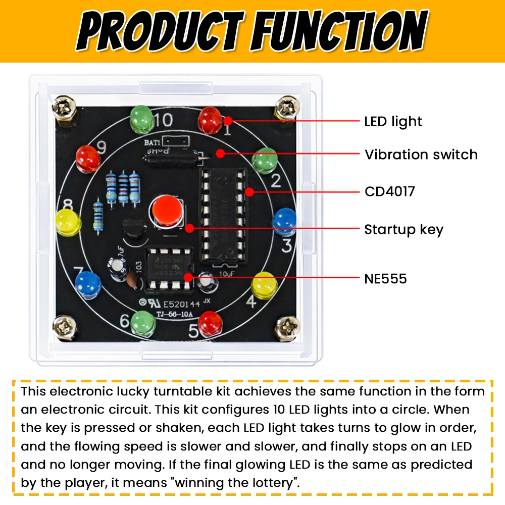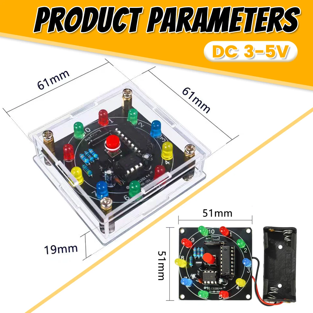 DIY LED Light Lucky Wheel Electronic Kit Electronic Dice Estimation Game DIY Soldering Kit 3Pin Output Pulse NE555 CD4017 3VDIY
