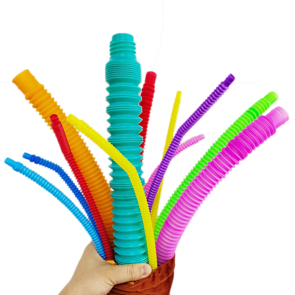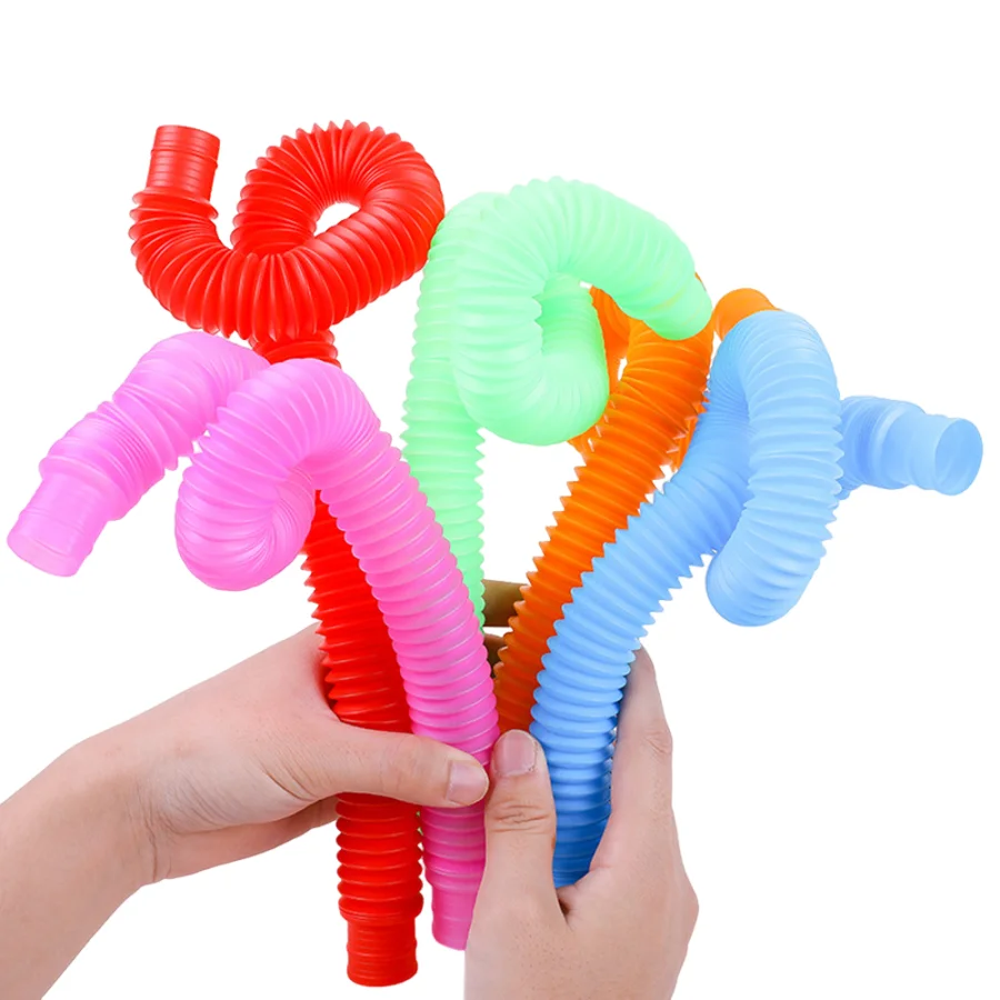 6/24Pcs Flexible Tube Toys Plastic Color Telescopic Tube Pop Stretch Tube Sensory Tubes for Children Decompression Toys