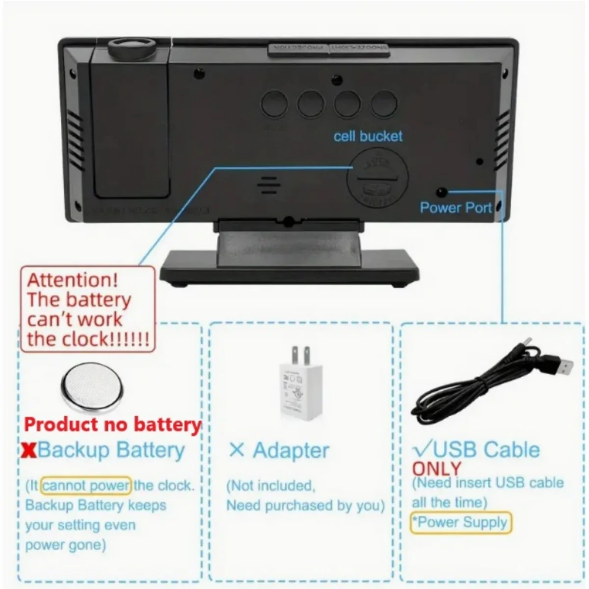 1PC Mirror multifunctional projection alarm clock Intelligent luminous clock Bedroom large screen projection clock