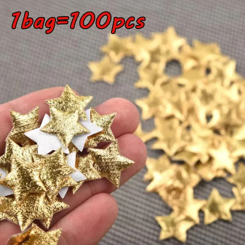 100Pcs Gold Stars for Christmas Party Decor Foam Fabric Stars DIY Scrapbook Cards Ornaments Embellishments Accessory