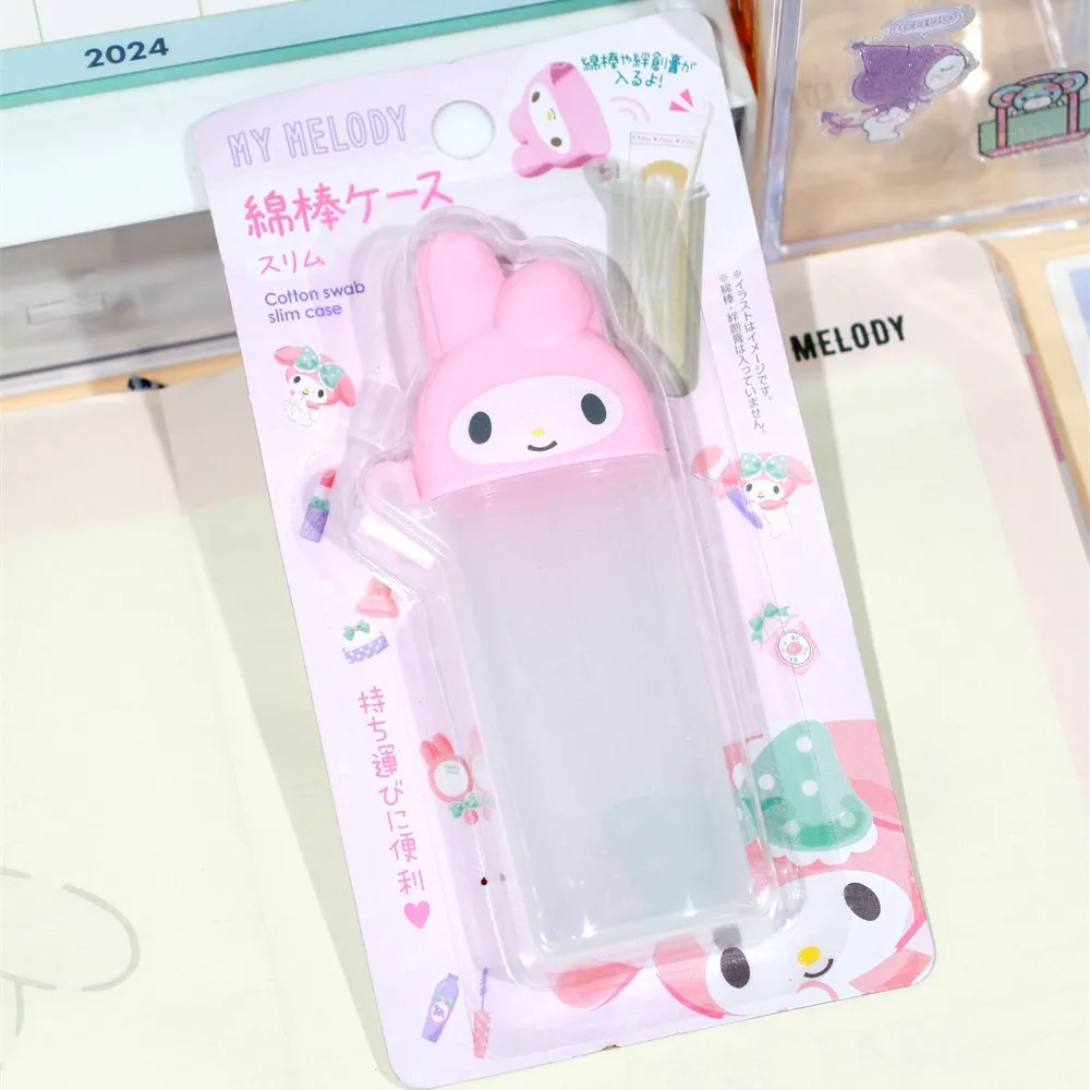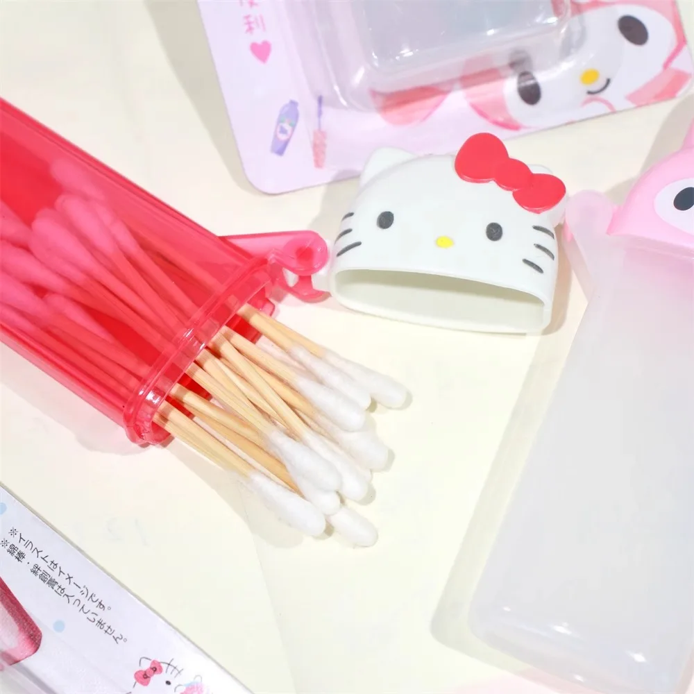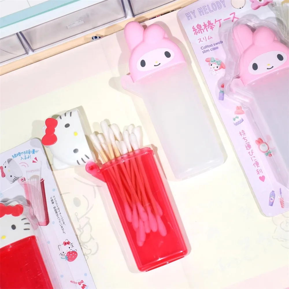 Anime Hello Kitty Storage Box Kawaii My Melody Cute Toothpick Cosmetic Swab Storage Box Portable Travel Mini Container