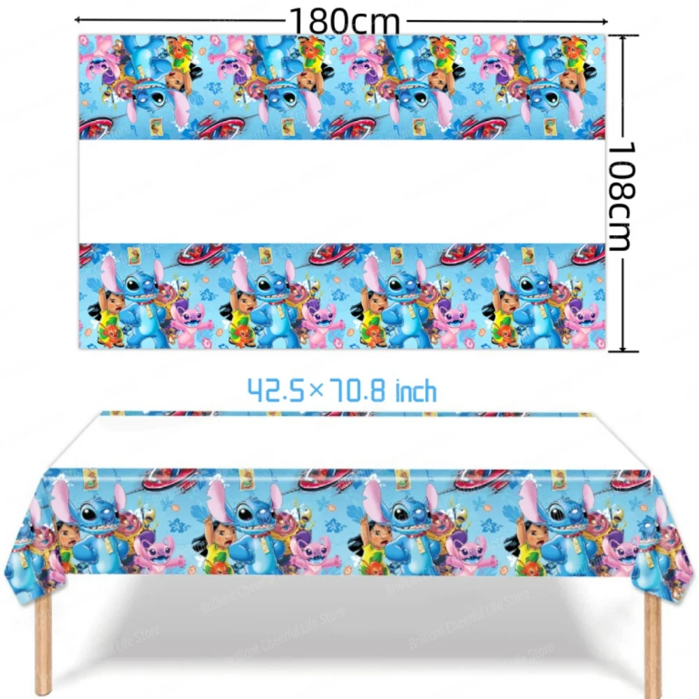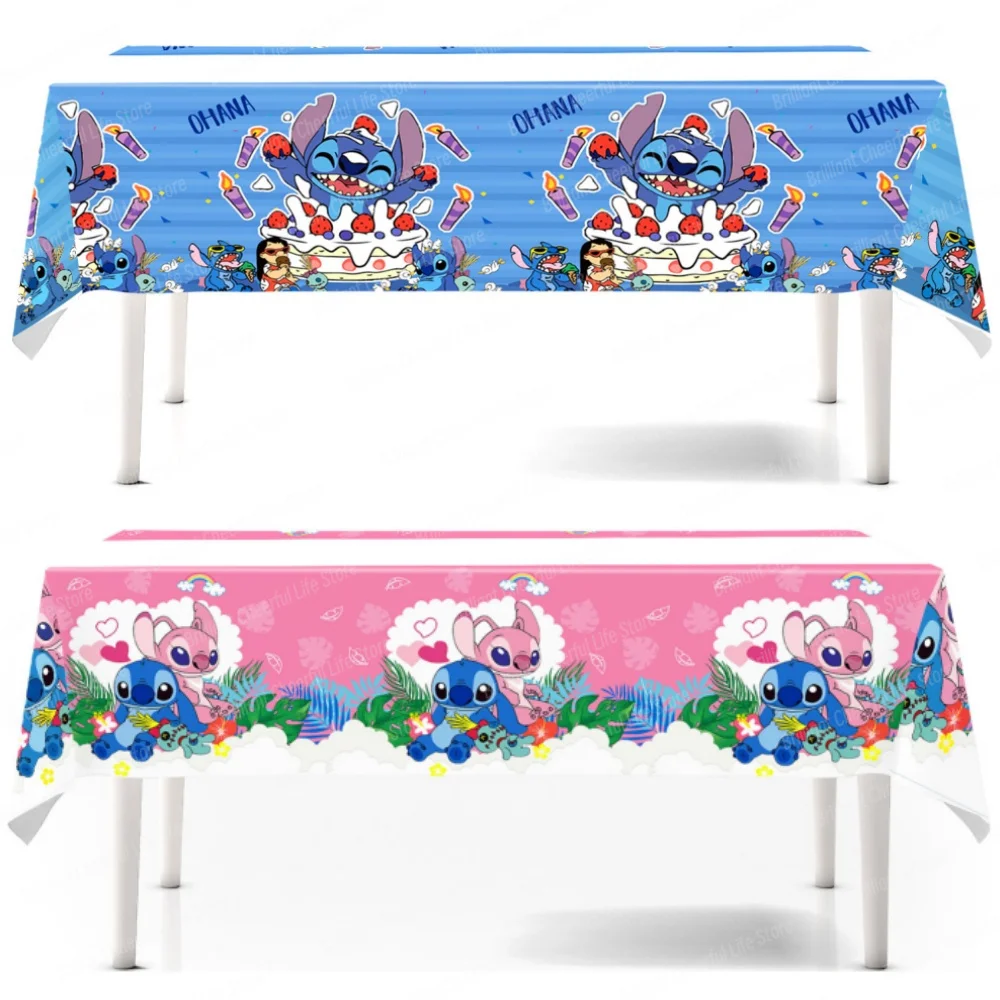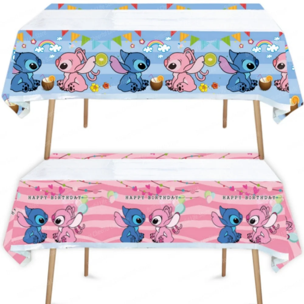 Stitch Party Tablecloth Kids Birthday Supplies Blue Stitch Pink Angel Decorations Table Cover for Boys Girls Baby Shower