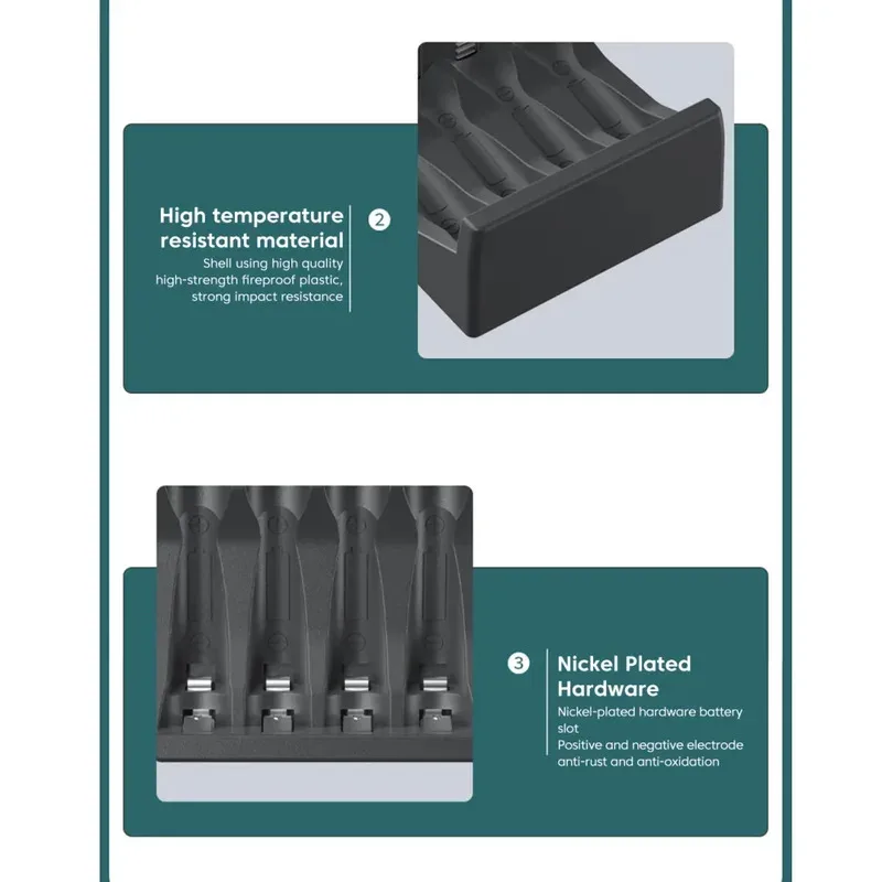 AA/AAA Battery Charger 4 Slots Intelligent LED Indicator USB C Micro Charger for Ni-MH/Ni-Cd Rechargeable AA/AAA Battery Charger