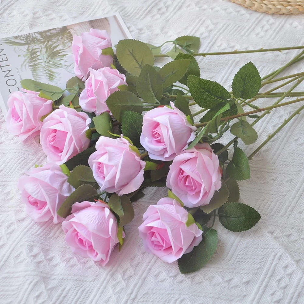 5pcs Artificial Flowers Silk Rose Long Branch Bouquet for Wedding Home Decoration Fake Plants DIY Wreath Supplies Accessories
