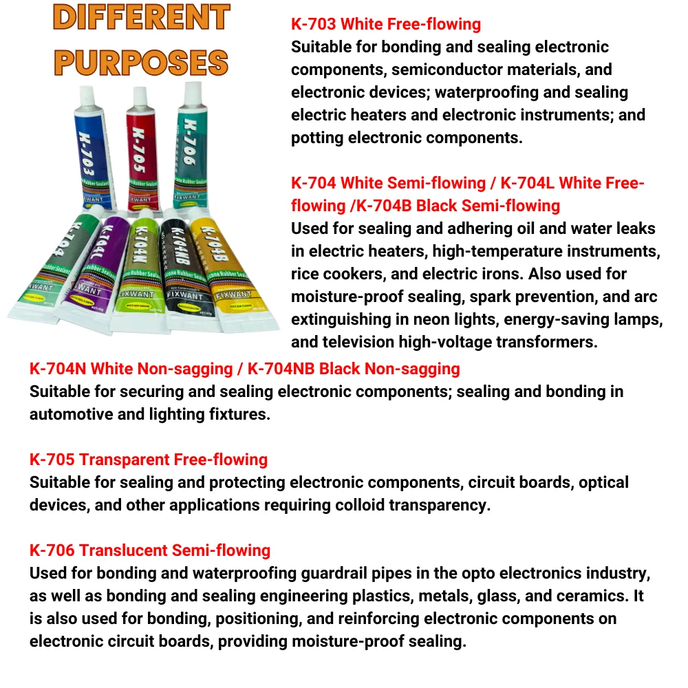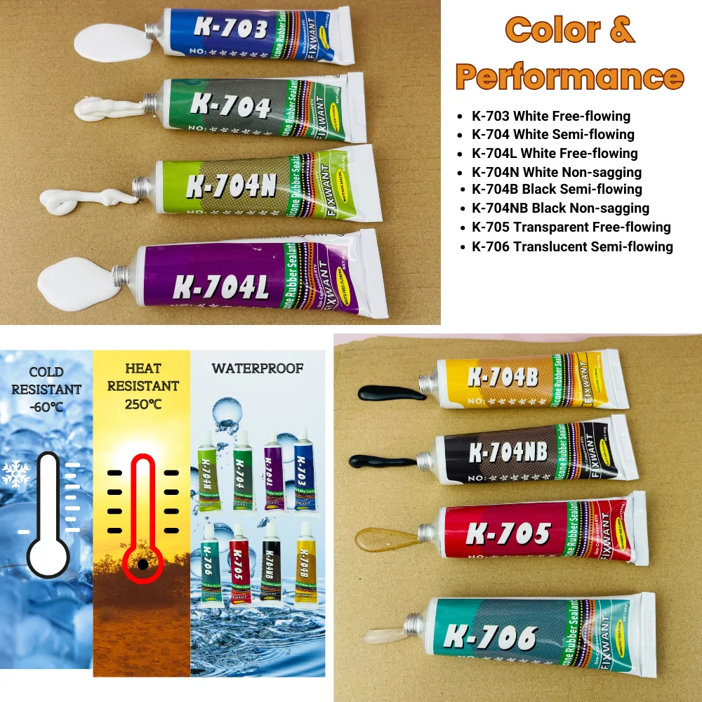 Silicone Industrial Adhesive 45g K-703 704 705 706 RTV Silicone Rubber Black White Transparent Electronic Component Sealing Glue