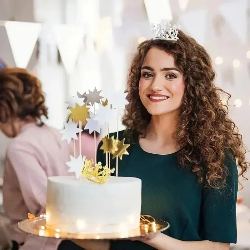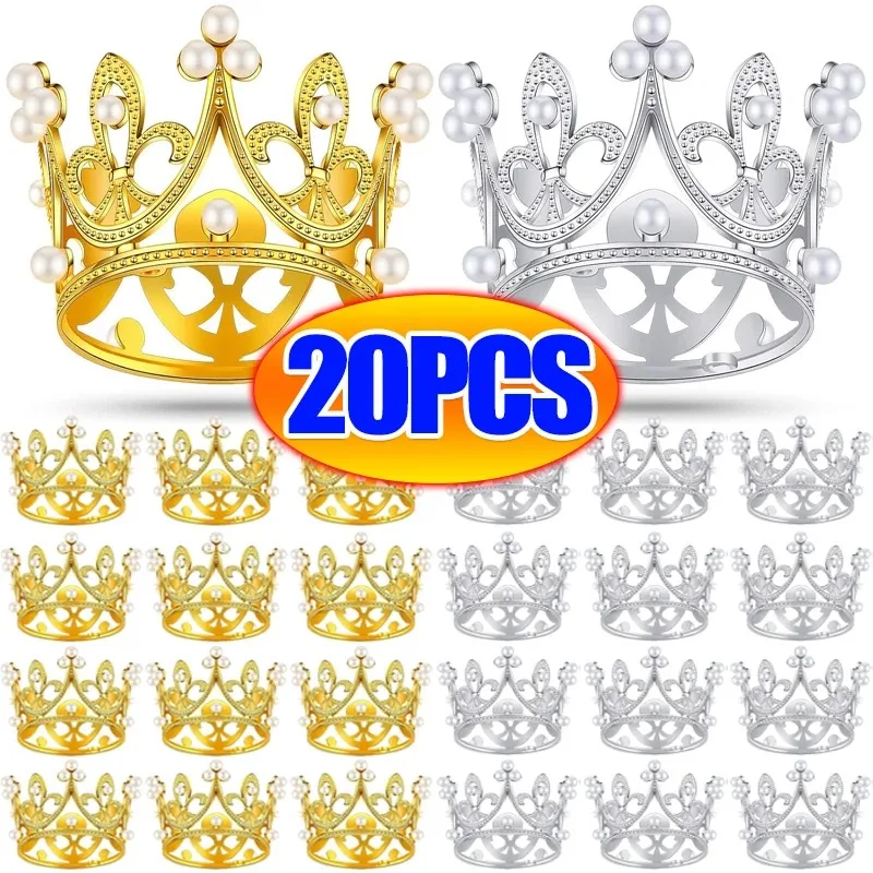 Mini Pearl Crown Cake Decoration Cupcake Topper Kids Hair Ornaments DIY Cake Baking Decoration for Wedding Birthday Party Decor