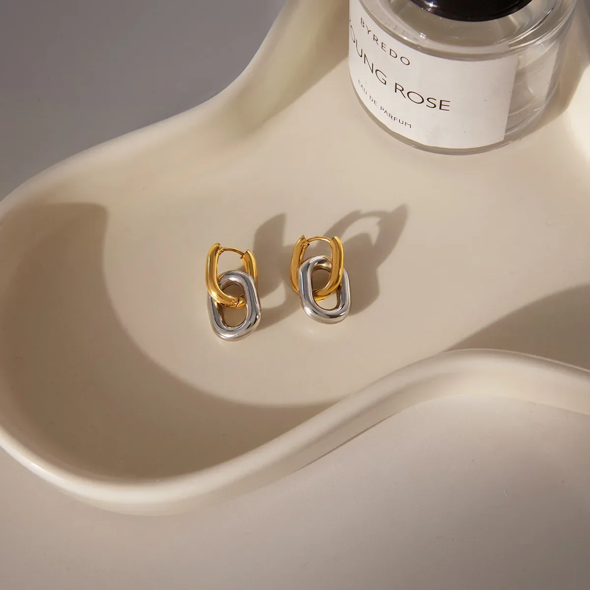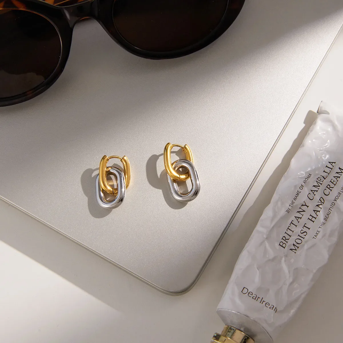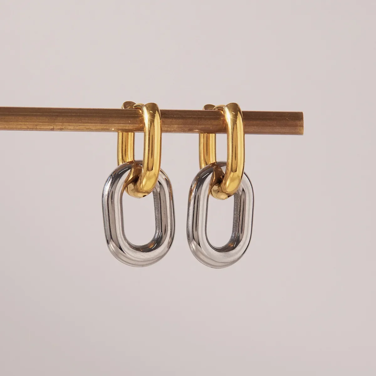 304 stainless steel circle solid-color earrings, vacuum electroplated (in the furnace), 18K gold plated, simple style classic ea