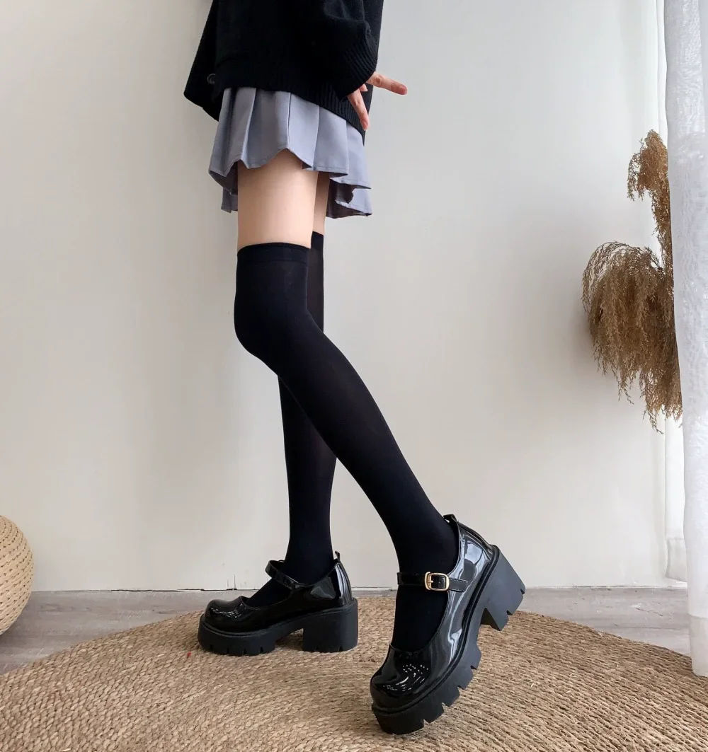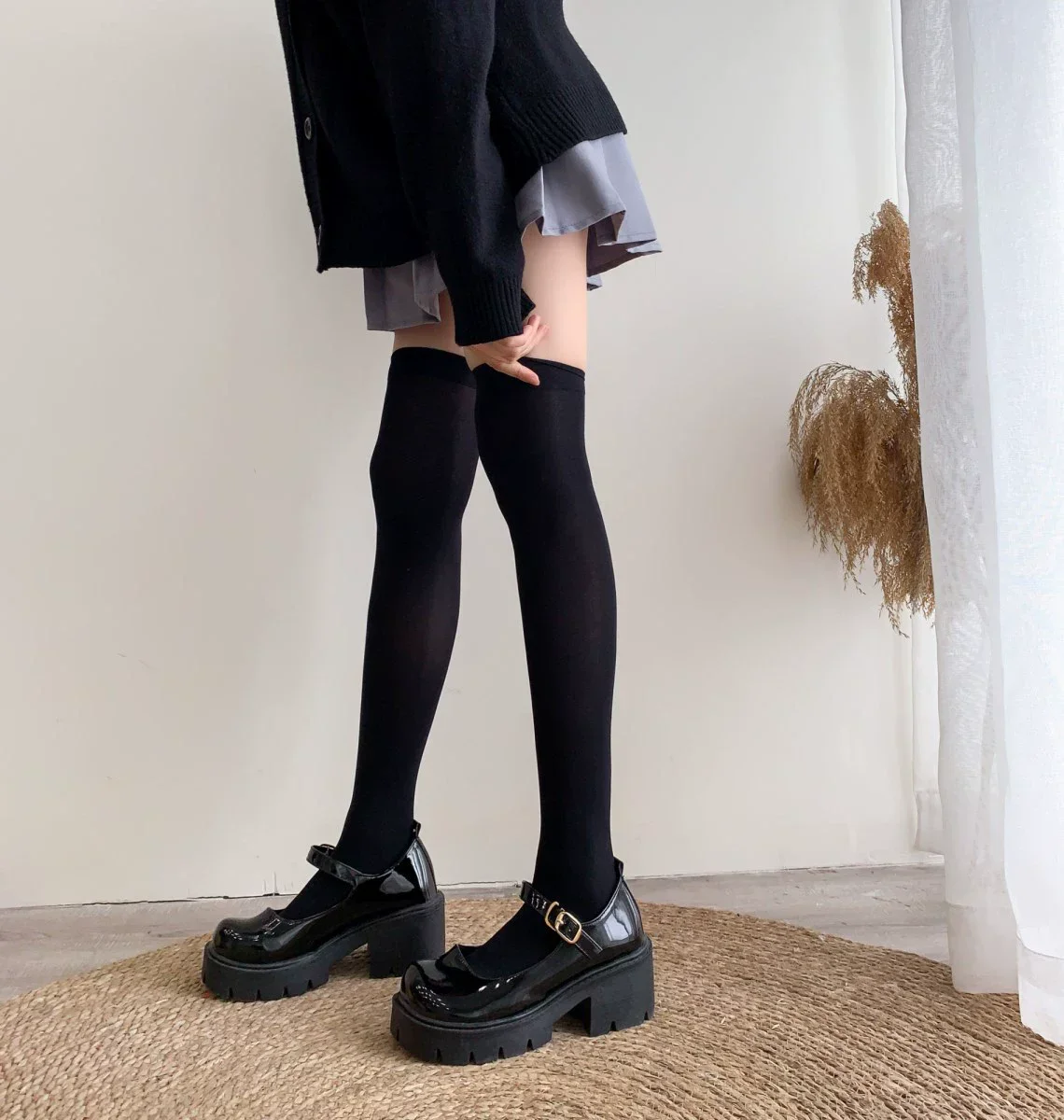 Black White Soild Color Long Socks Women Over Knee Thigh High Over The Knee Stockings Lolita Ladies Girls Warm Knee Socks