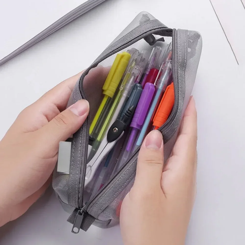 Mesh Pencil Case Transparent Pens Pouch Cute Simple Aesthetic Bag Organizer Office School Supplies for Student Stationary