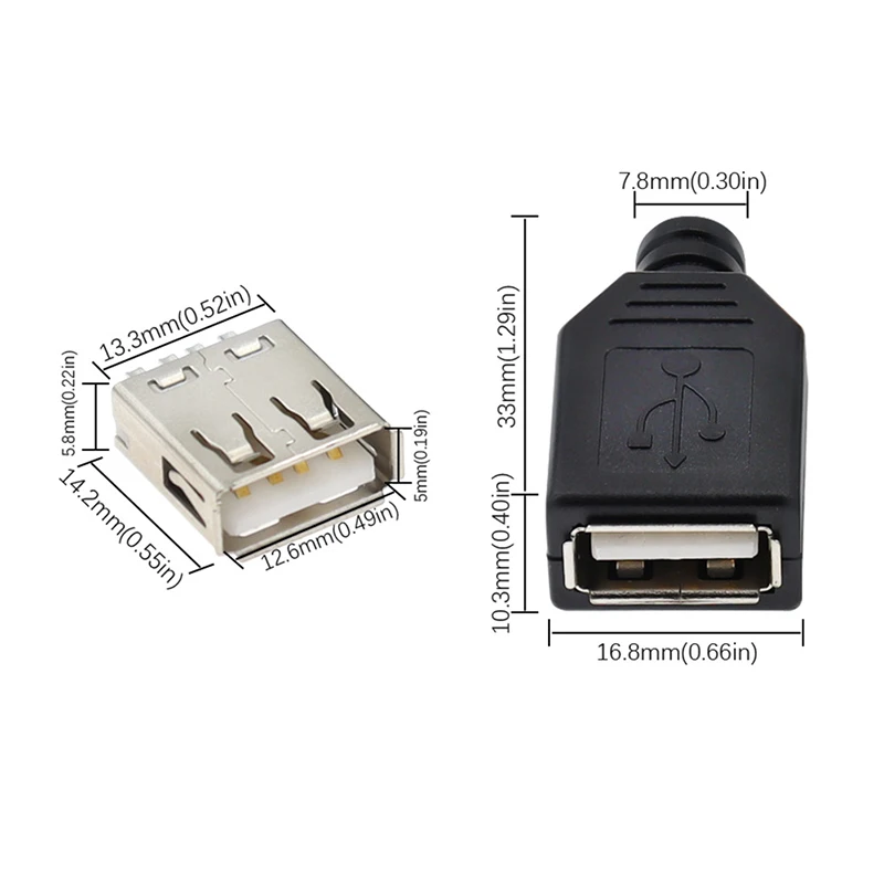 10pcs Type A Male Female USB 4 Pin Plug Socket Connector With Black Plastic Cover Type-A DIY Kits