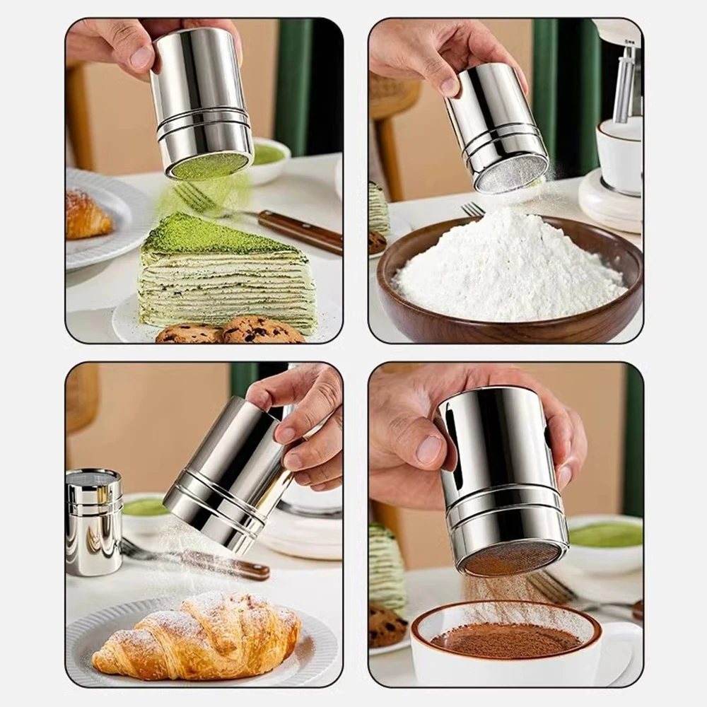 Duster With Cover Cocoa Powder Coffee Stainless Steel Duster Fine Mesh Bucket Seasoning Bottle Home Kitchen