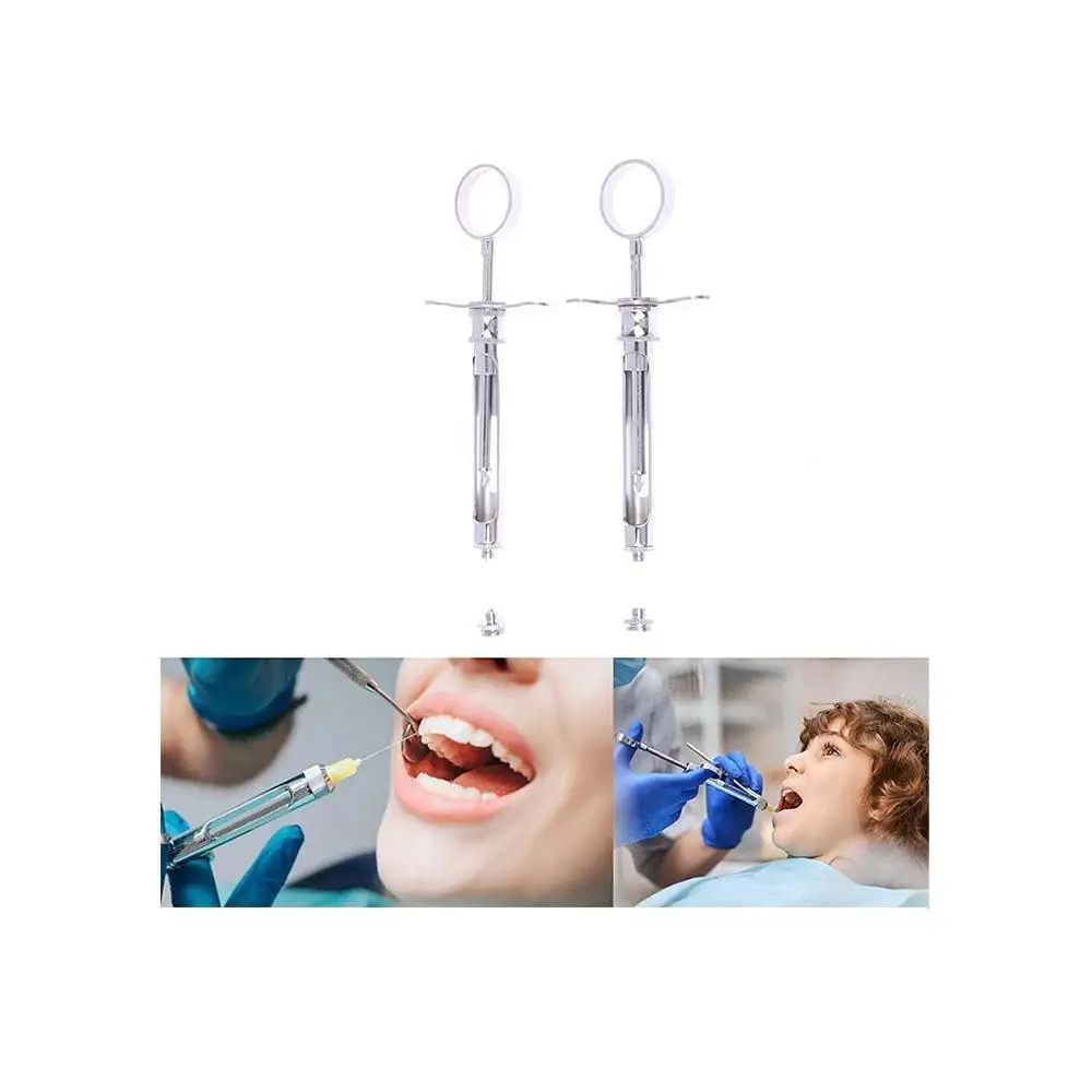 1Set Dental 1.8ML Injection Syringe Hook-headed Sharp Head Stainless Steel Dental Aspirating Syringe Surgical Instrument