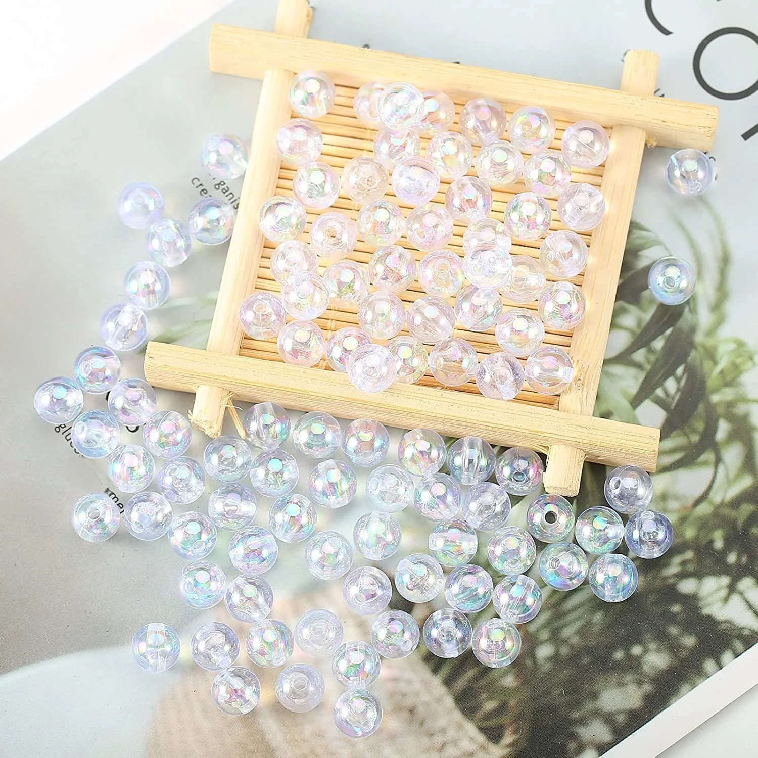 6mm/8mm/10mm Acrylic Round Craft Beads - Jewelry Making Supplies, for Necklace, Bracelet, DIY Accessories (Transparent White)