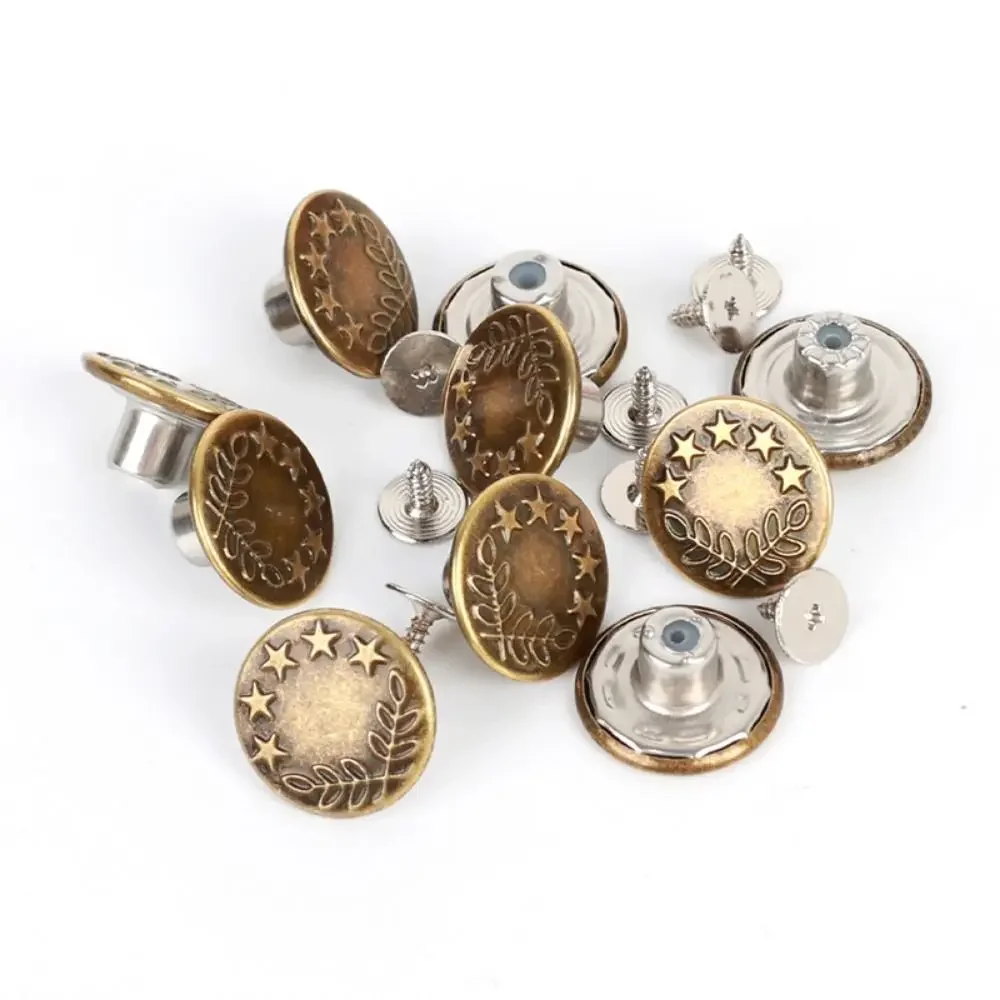 10Pcs/pack Jeans Buttons With Screwdriver Clothing Pants Sewing Accessories Waist Buckle 17mm Nail Free Waist Extenders Button
