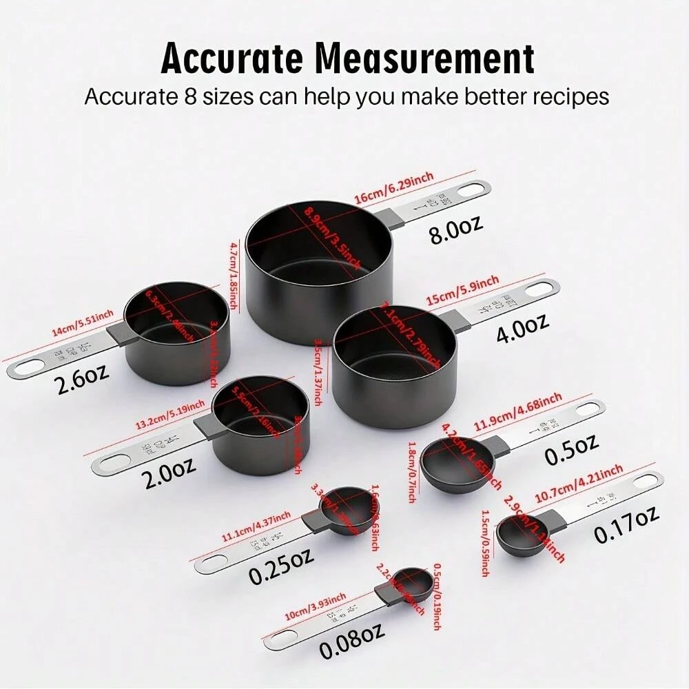 8Pcs Measuring Cups Spoons Stackable Stainless Steel Tablespoon for Measuring Dry Liquid Ingredients Teaspoon with Plastic Head