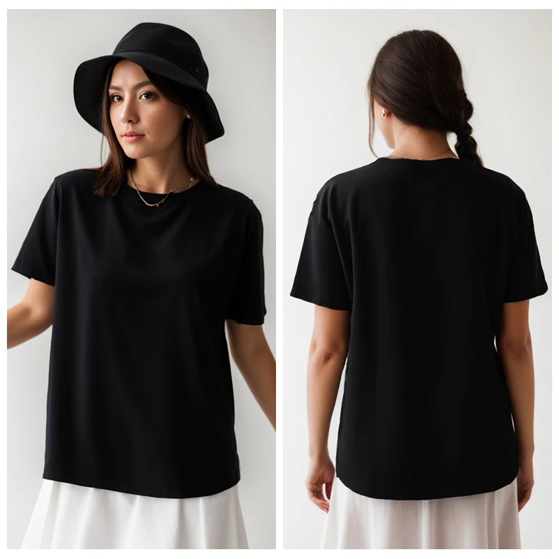 Cotton Short Sleeve Tops 220 Grams Heavy T-shirt Y2k Casual Comfortable Tee Shirt Black & White O-neck Woman Clothing YH2532