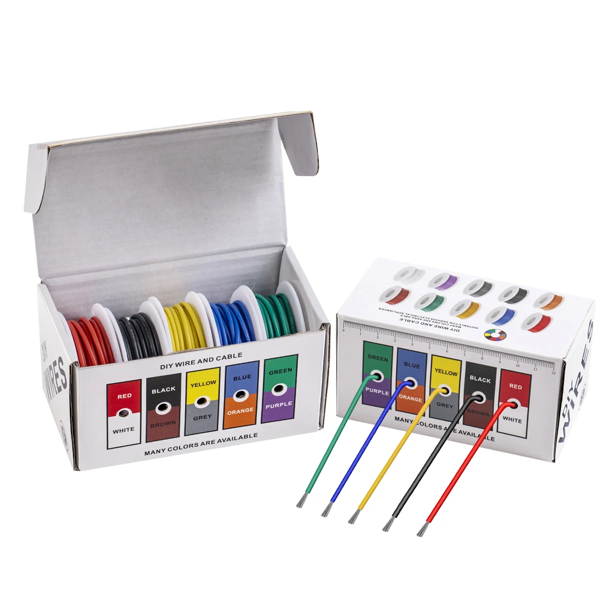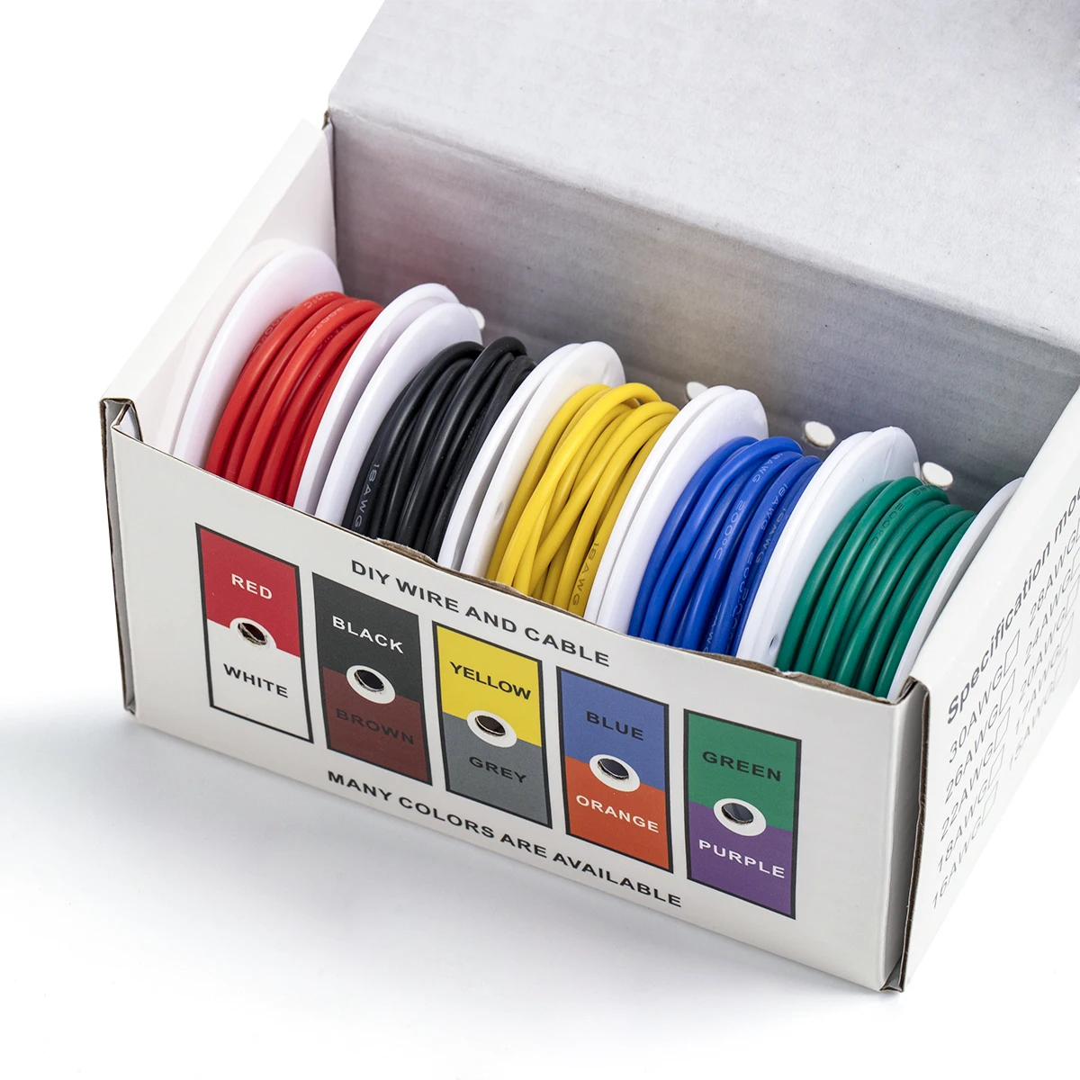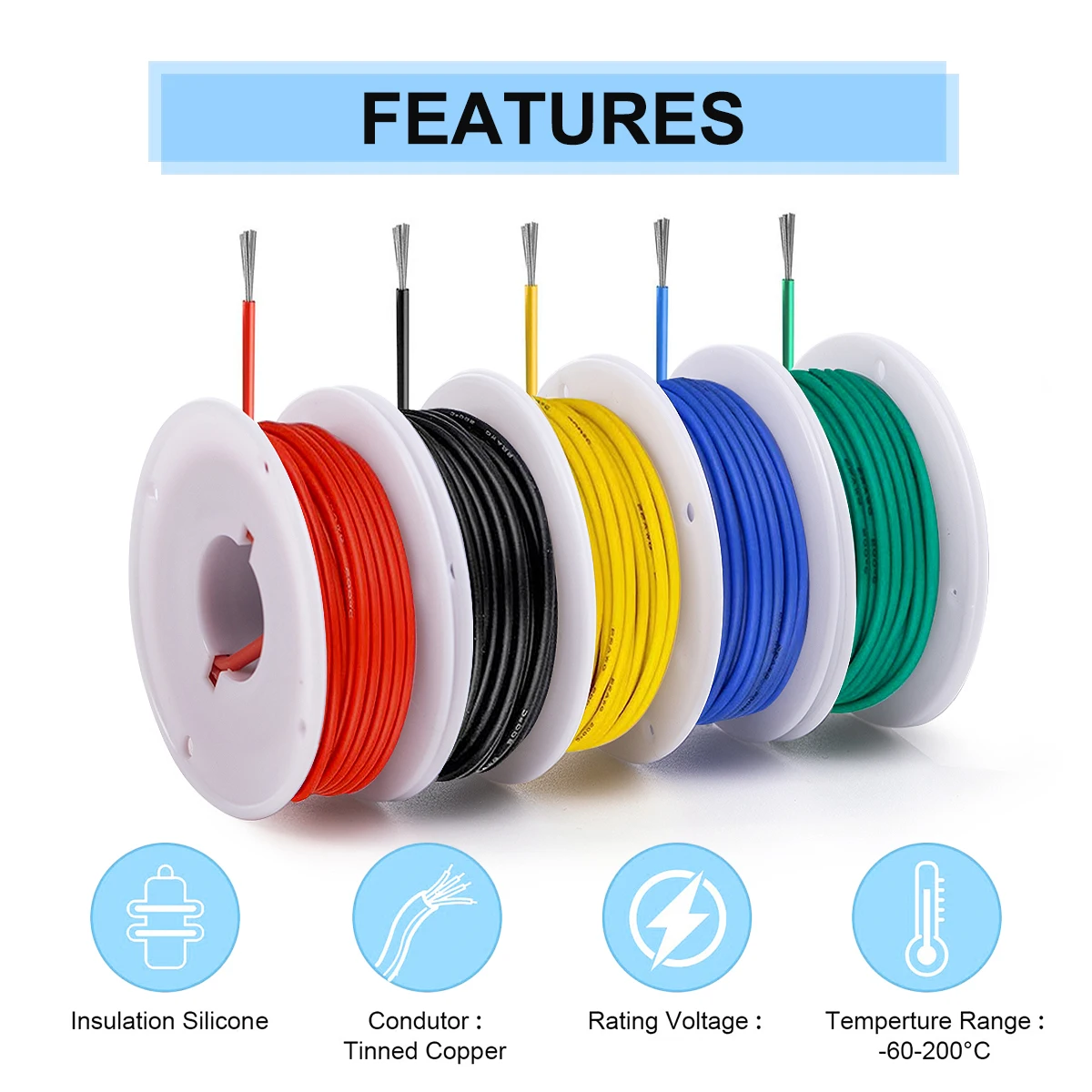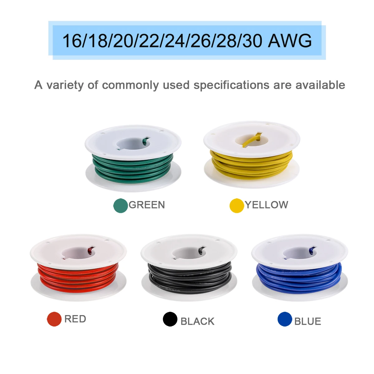 5 Colors 16/18/20/22/24/26/28/30 AWG Stranded Electrical Wire Flexible Silicone Tinned Copper Wires 18 Gauge Hookup Wire Cable