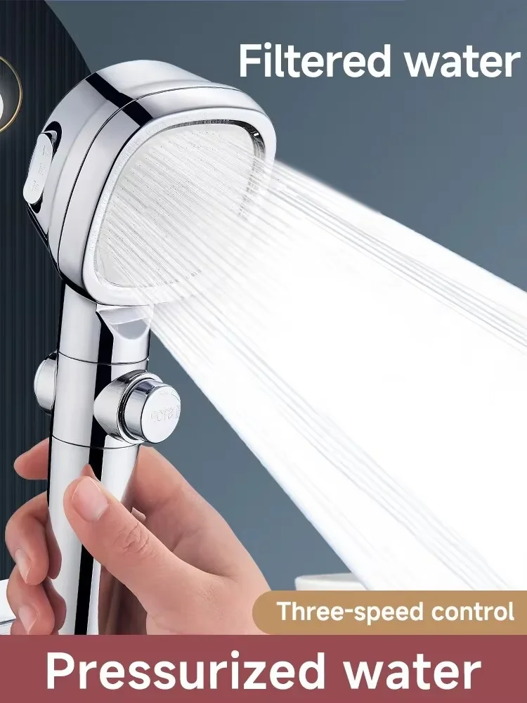 Square Adjustable High Pressure Shower Head Filter Water Saving Shower Head One Click Water Stop Bathroom Accessories