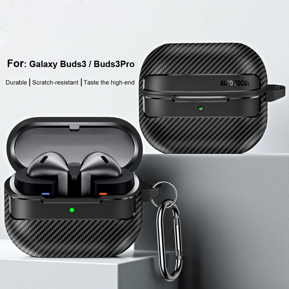 Carbon Fiber Earphone Protector Case For Samsung Galaxy Buds3 / Buds 3 Pro Case Protective Sleeve Cover With Keyring Accessories