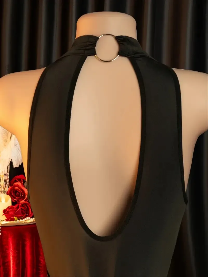 Porno Open Bra Underwear Women Costumes Deep V Hollow Baby Doll Dress Hanging Neck Bodysuit Crotchless Lingerie Sets