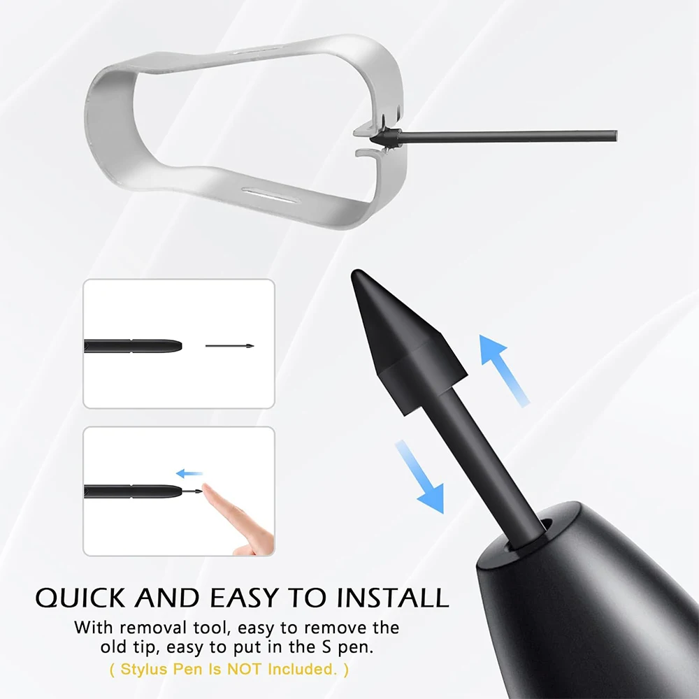 Stylus Replacement Tips Nibs For Samsung Galaxy Tab S6 / S6 Lite / S7 / S7+ / S8 / S8+ / S9 / S10 S Pen Nibs with Removal Clip