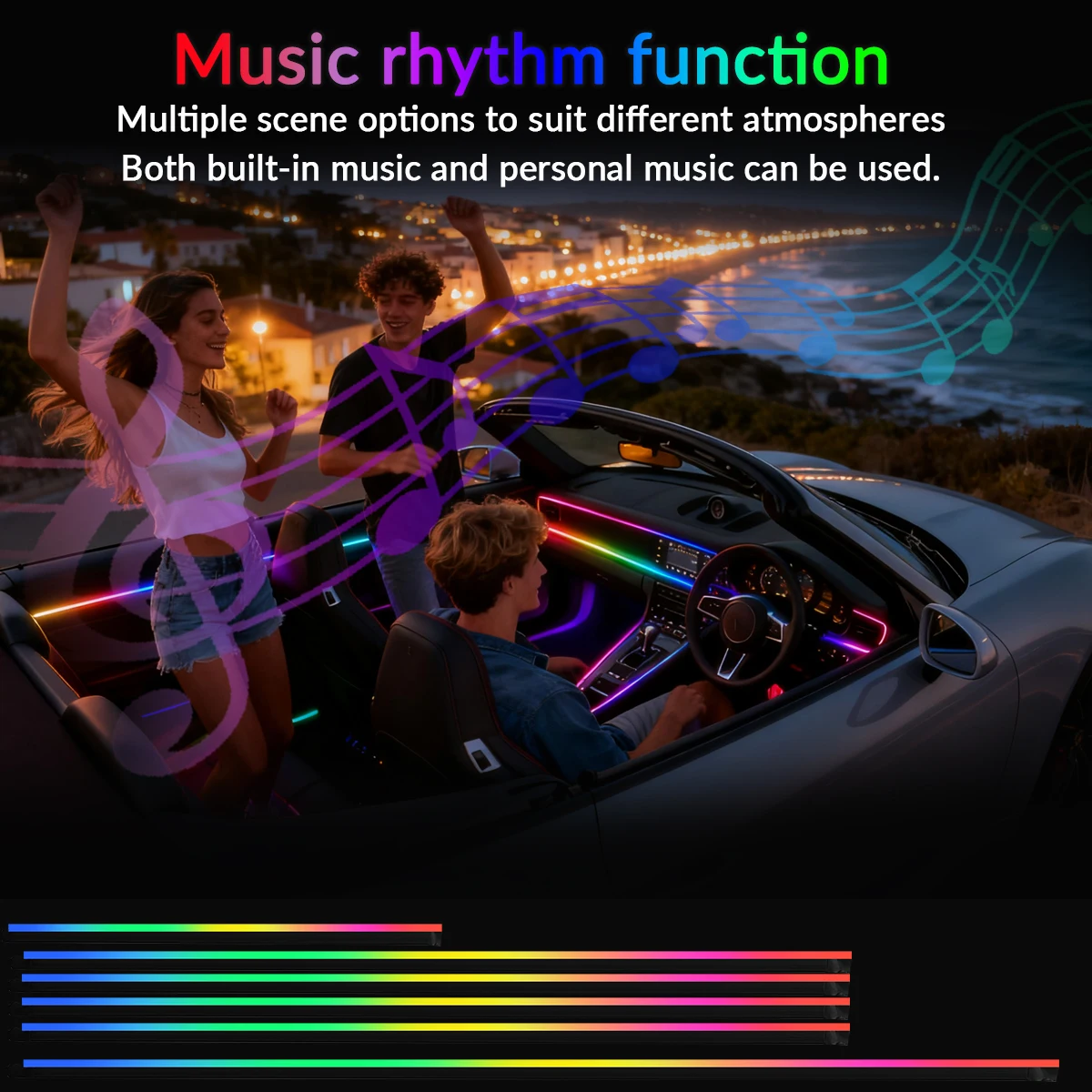 Symphony Streamer Car Ambient Light Interior LED Full Color RGB Neon Acrylic Strip Atmosphere Lighting Kit App