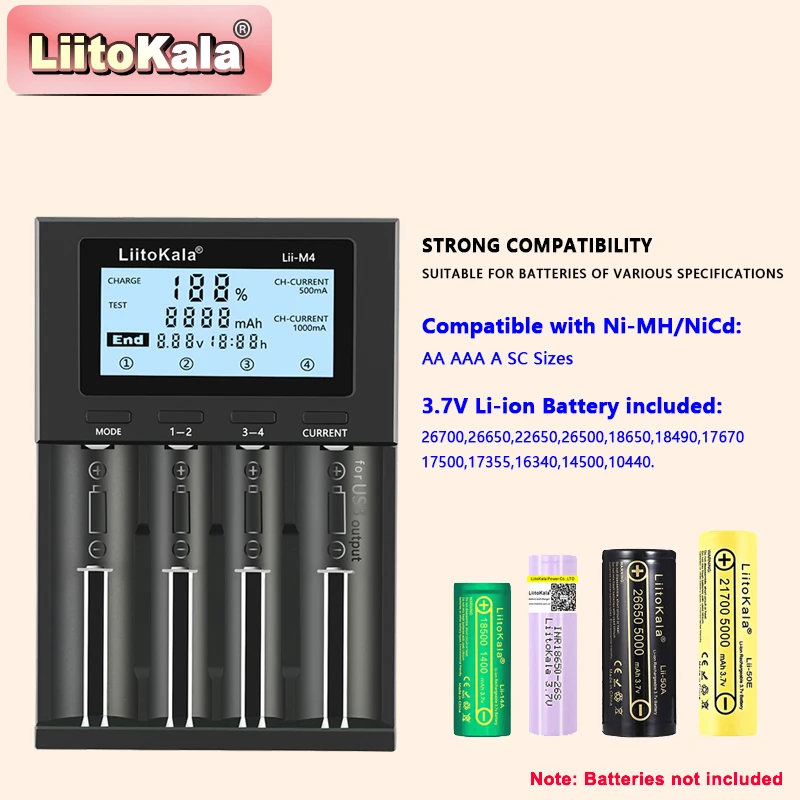 LiitoKala Lii-M4 Lii-M4S 5V EU AU UK US Plug Battery Charger For 3.7V 18650 26650 21700 14500 18350 17500 1.2V AA AAA A C