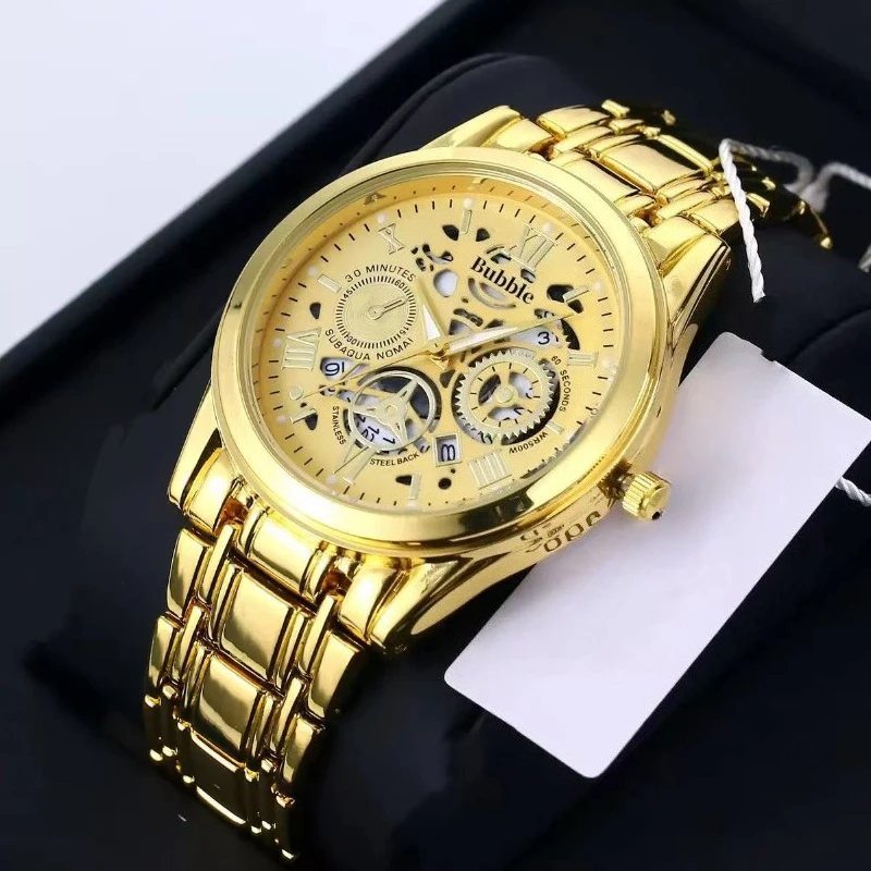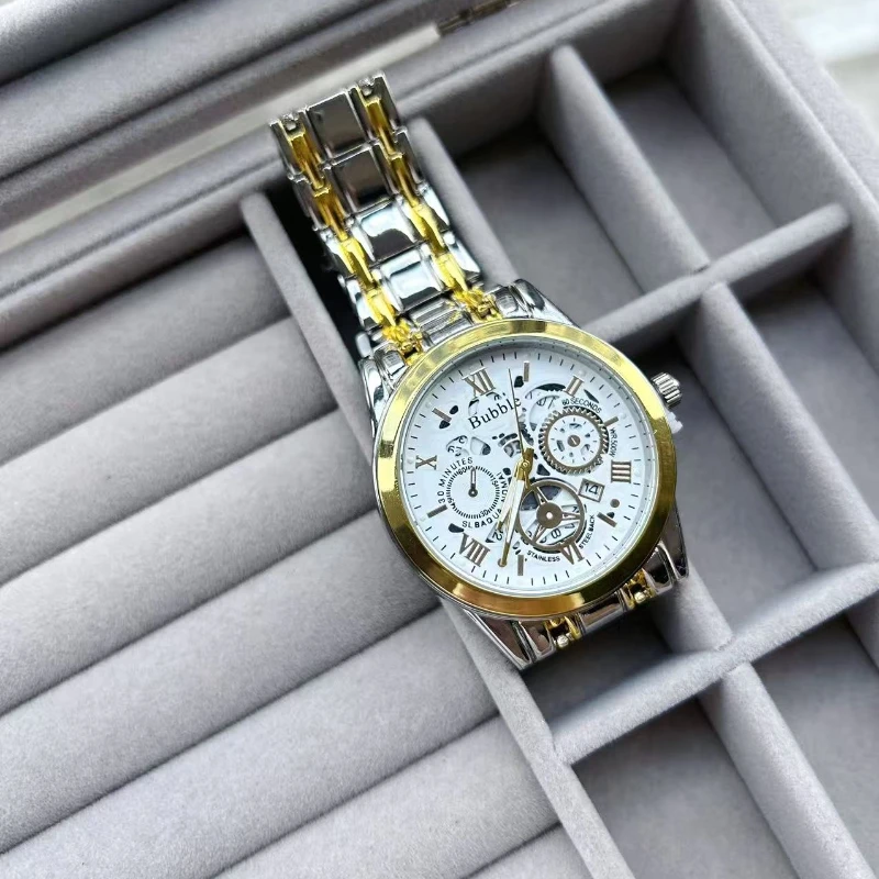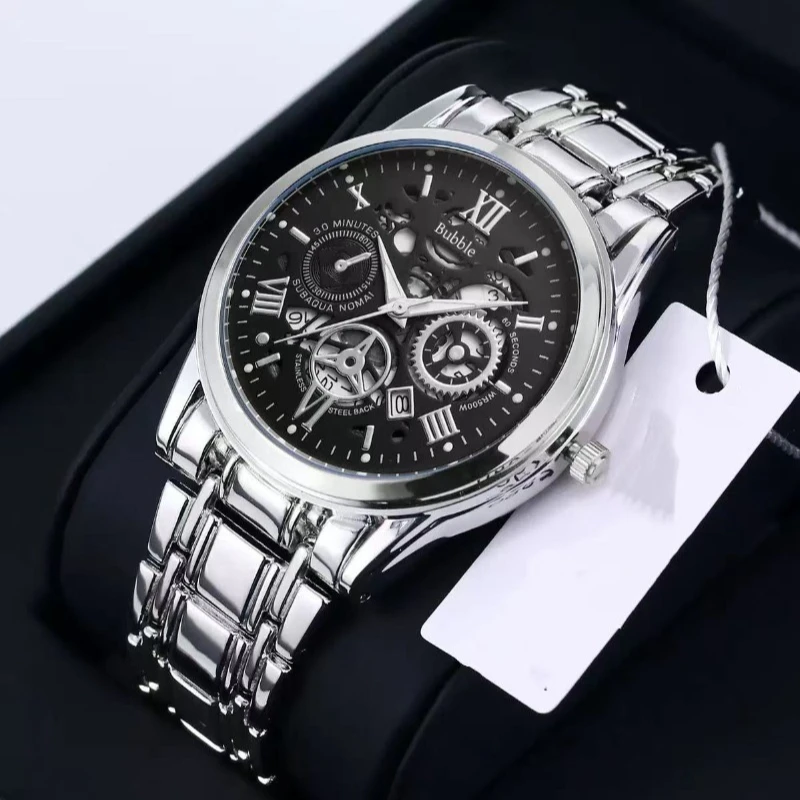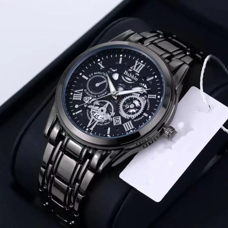 Men's watch, classic fashion ultra-thin luminous double calendar steel belt quartz watch