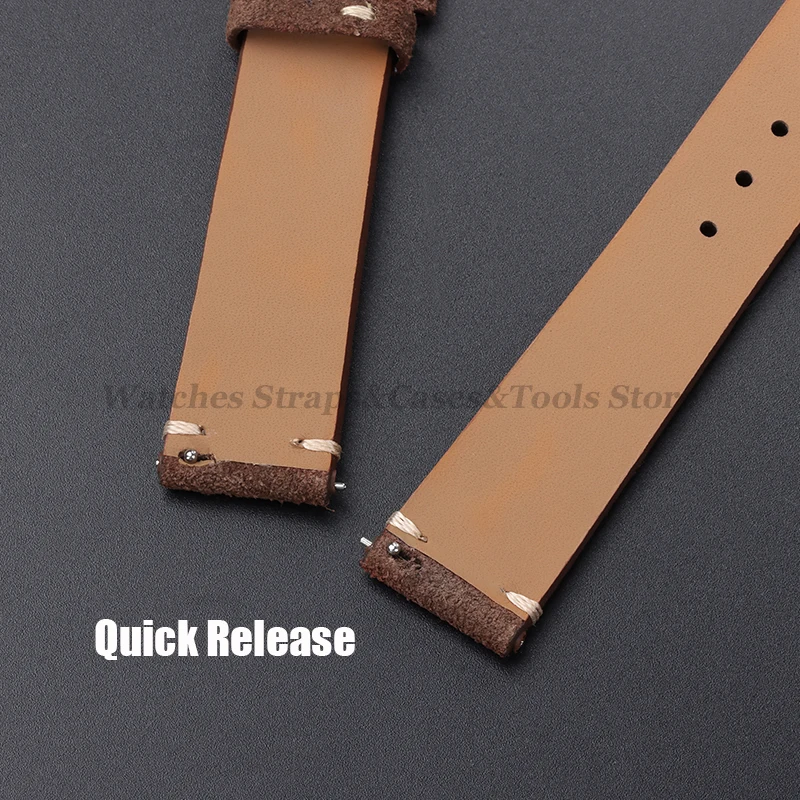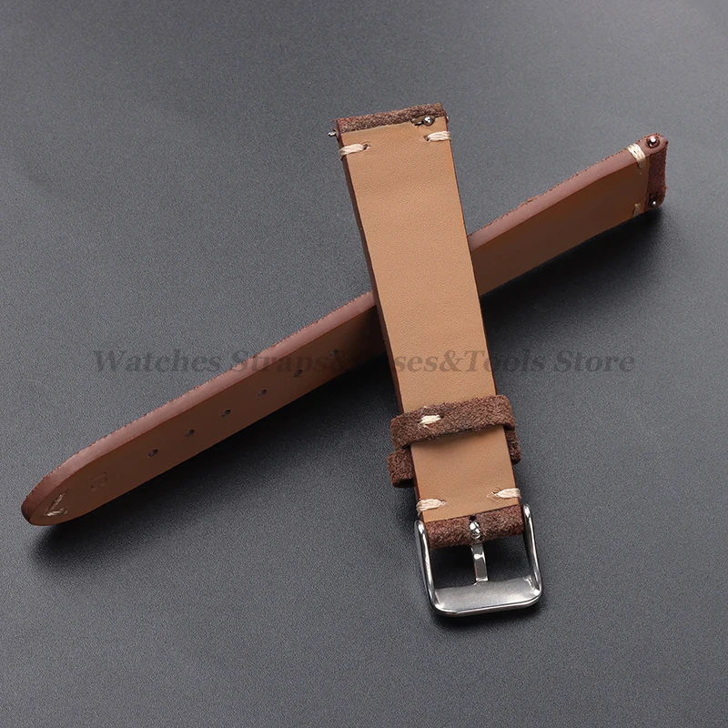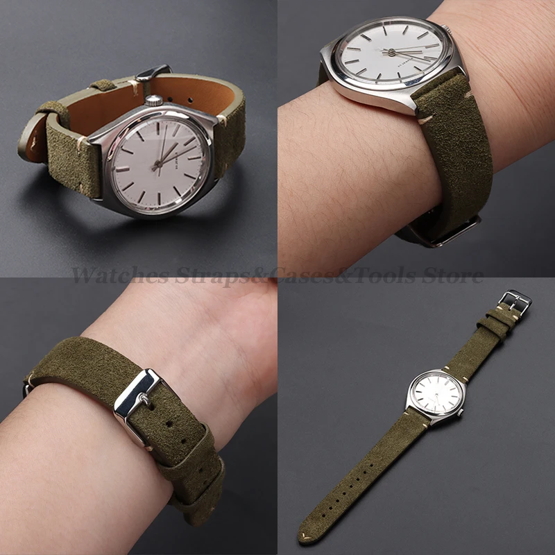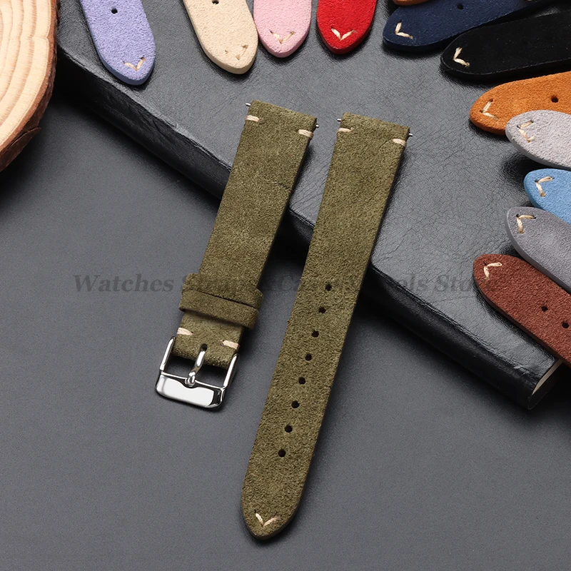 Vintage Genuine Suede Leather Watchband 14mm 16mm 18mm 20mm 22mm for Omega for Seiko Handmade Bracelet Quick Release Watch Strap