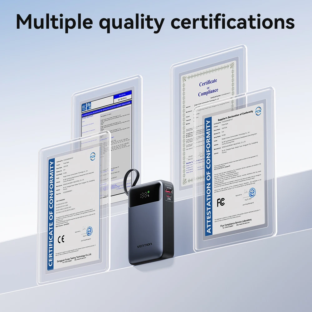 Vention 65W Power Bank 20000mAh Built-in USB-C Cable Portable Powerbank for Laptop PD Fast Charger for iPhone 17 Samsung S25 S24