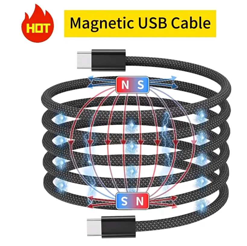 100W Magnetic Suction Anti Winding USB C Cable Fast Charging Wire Mobile Phone Wires Cable For Samsung Type C Data Charge Cable