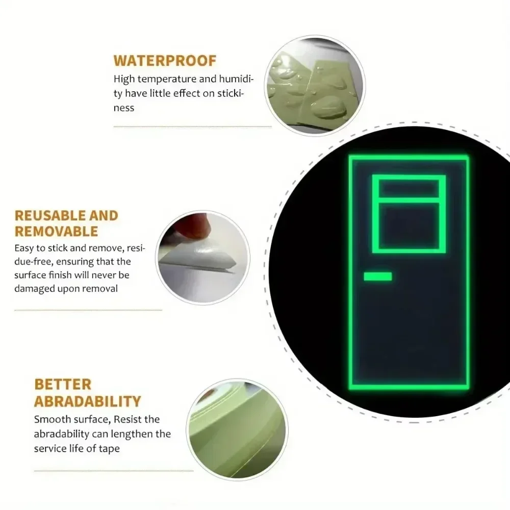 2025 1CM*3M Roll Luminous Tape Stair Fire Warning Stickers Stage Green Fluorescent Anti-collision Warning Sticker Luminescent