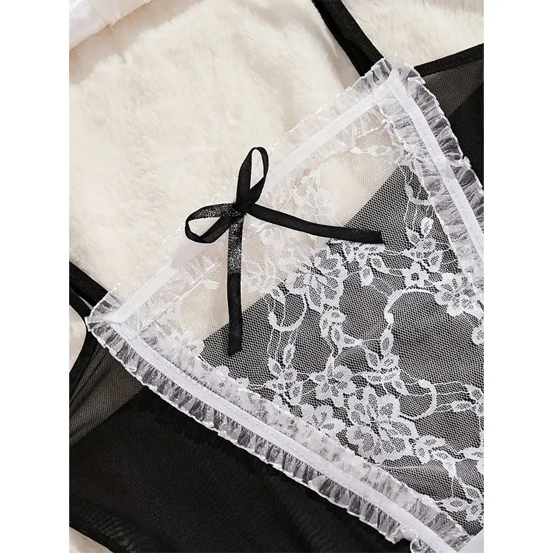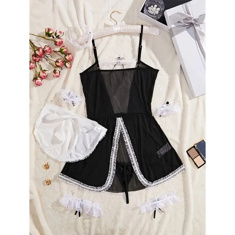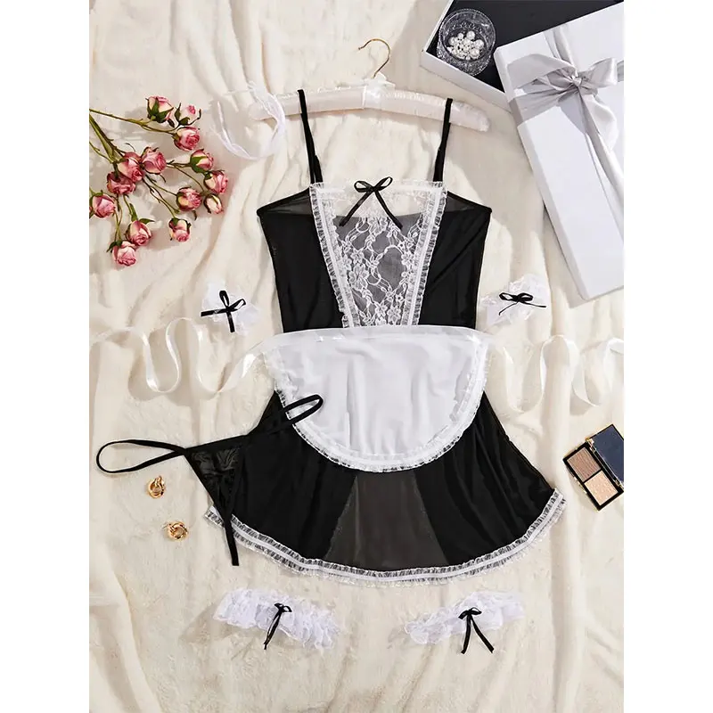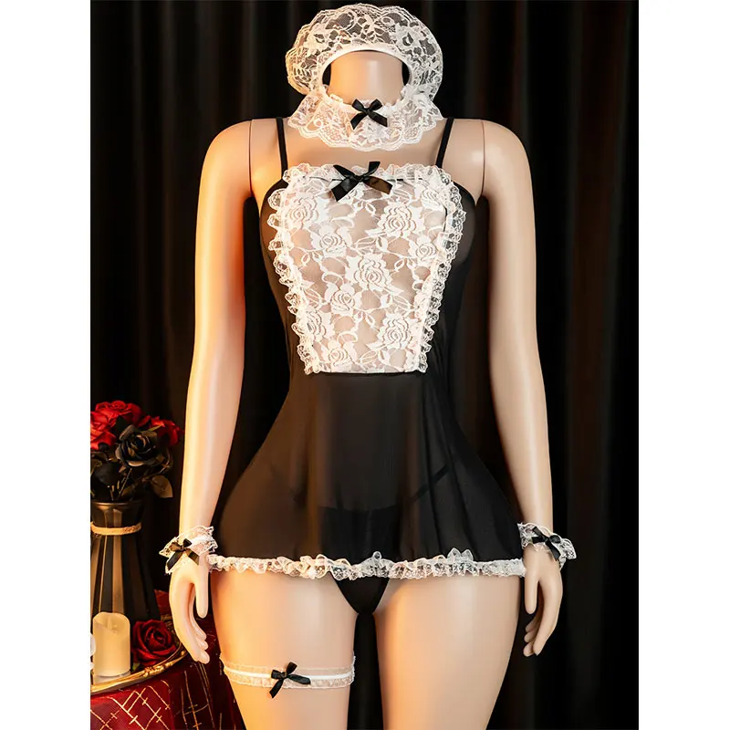Crotchless Costumes Maid Dresses Bsby Doll Dress Cosplay Uniform Woman Hot Sale Lingerie sheer Female Clothing