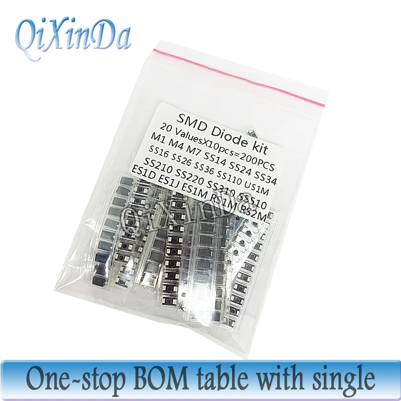 SMD Diode Assorted Kit M1 M4 M7 SS14 SS24 SS34 SS210 SS220 SS510 RS1M US1M ES1M 20ValuesX10pcs Electronics SMA Diodes Set