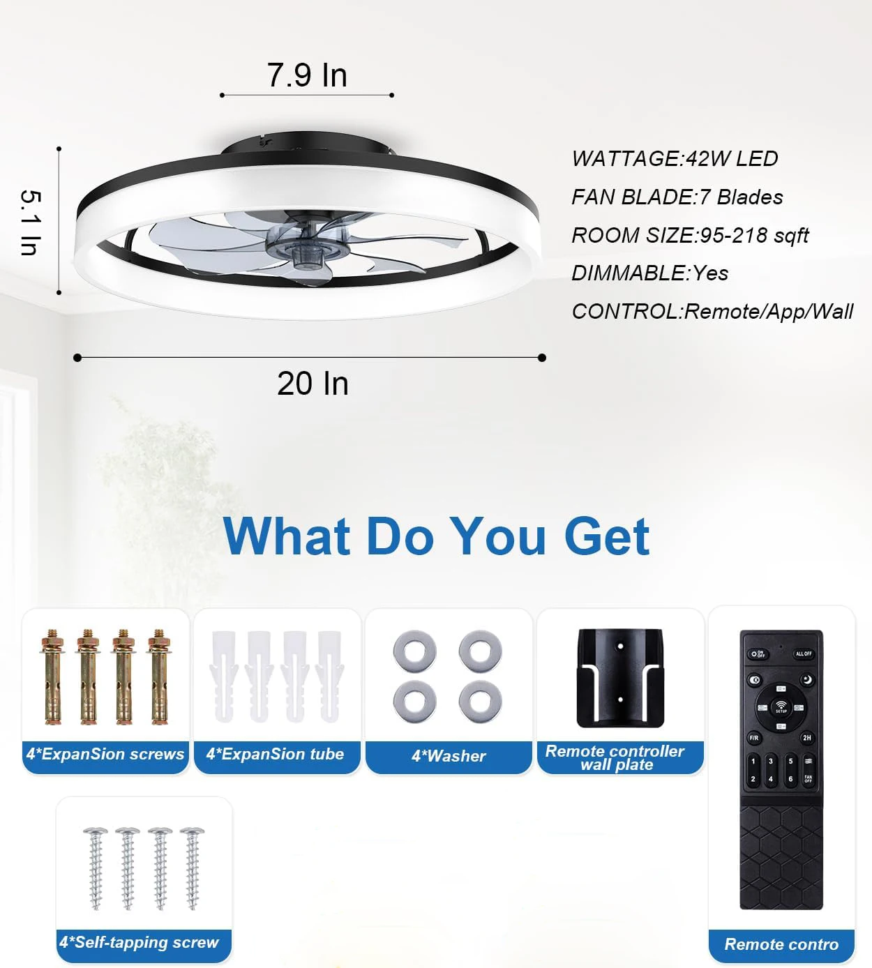 aliexpress , ali , shop , ali shop , online , prodavnica , online shop , online prodavnica , kupujem , prodajem , Modern ceiling fan with light and remote control, 19.7 "low-specification ceiling fan, with 6-speed and dimmable LED, APP 3CCT