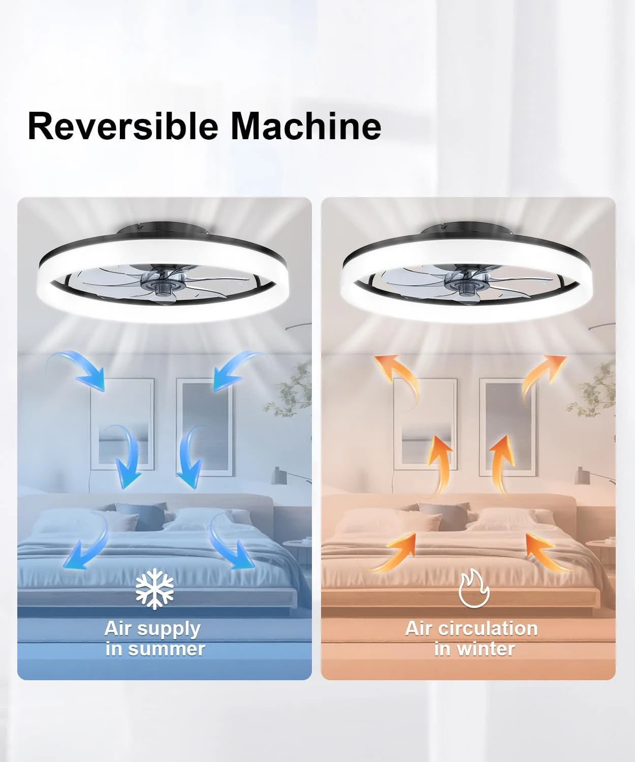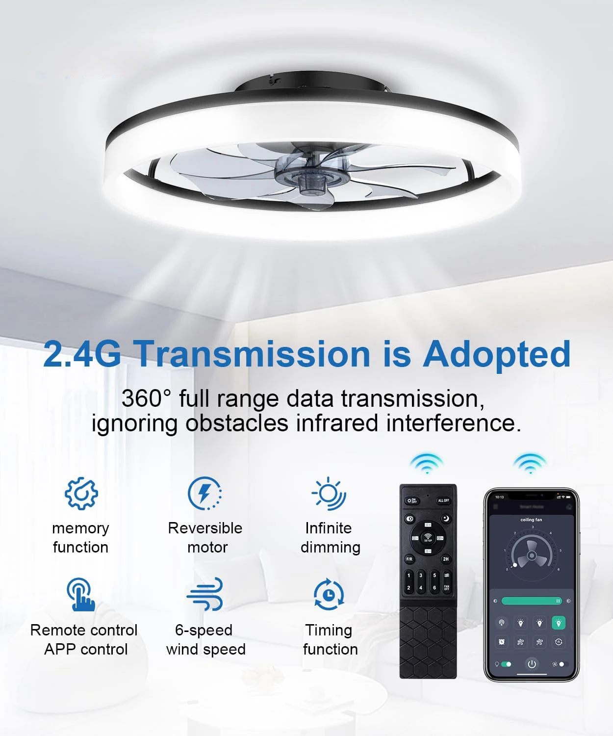 Modern ceiling fan with light and remote control, 19.7 ''low-specification ceiling fan, with 6-speed and dimmable LED, APP 3CCT